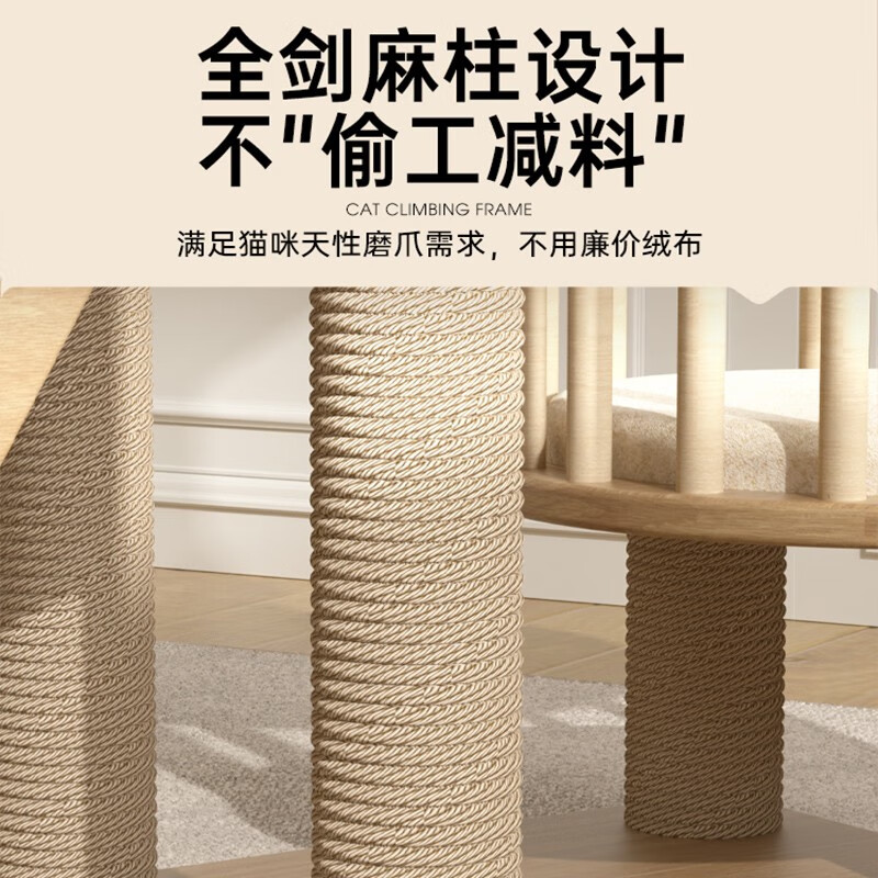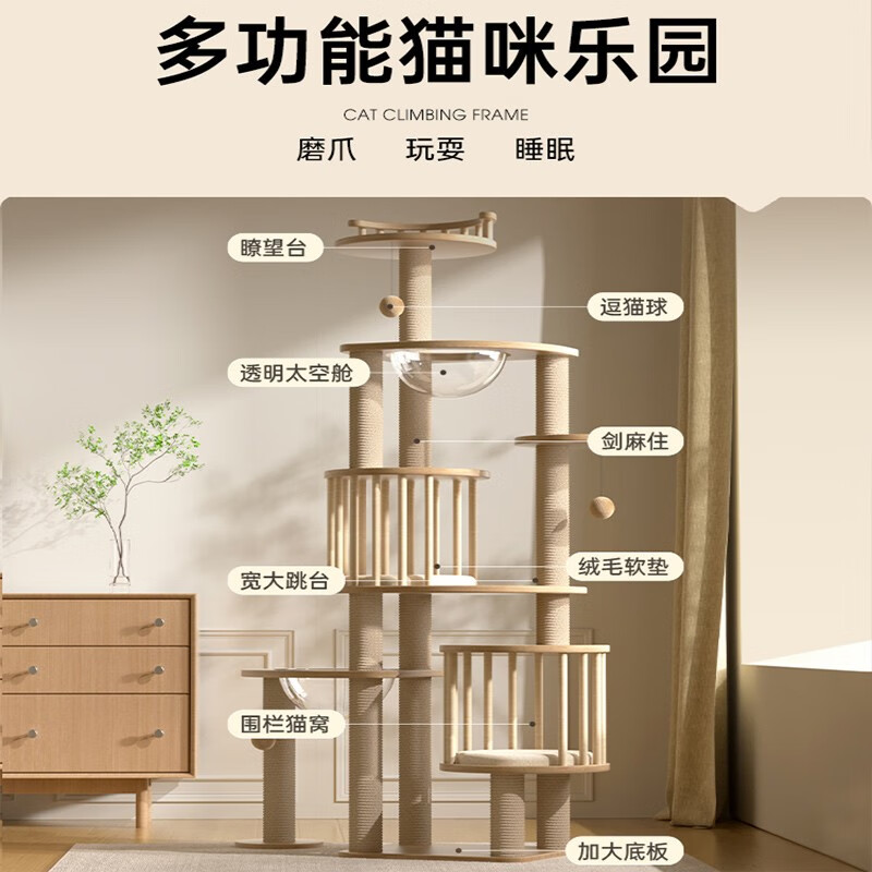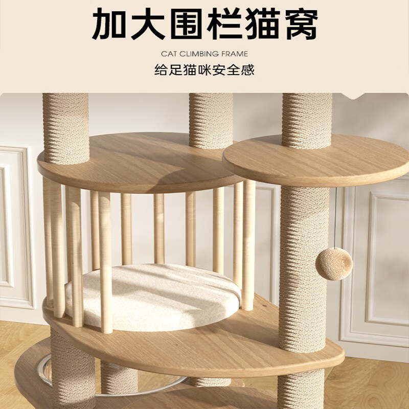 美人喵 猫爬架猫窝猫树一体猫抓树太空舱猫跳台趴架爬柱大型实木猫咪玩具 围栏窝猫爬架丨基础A款150