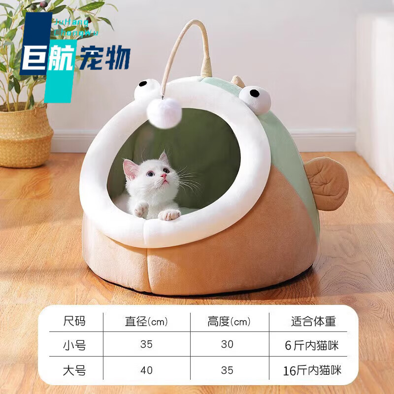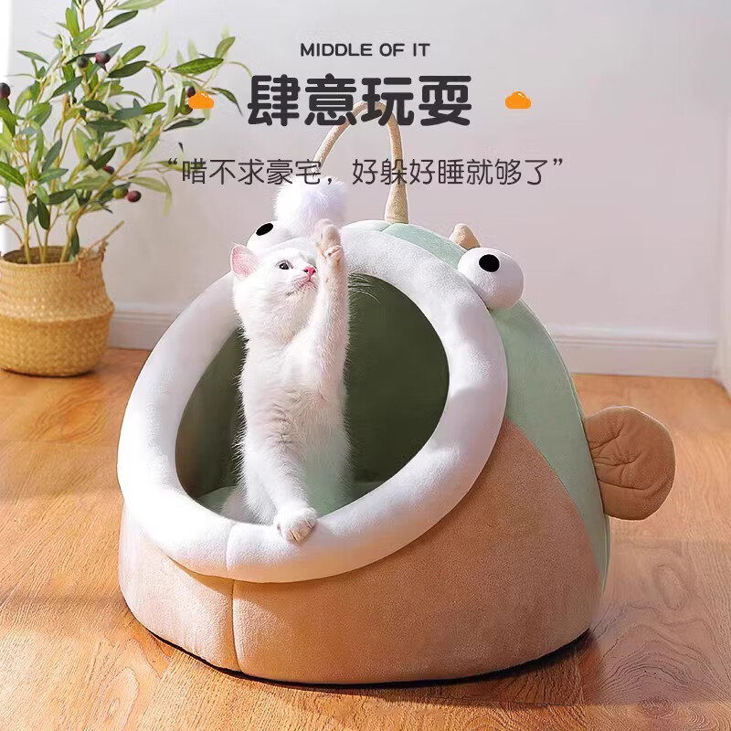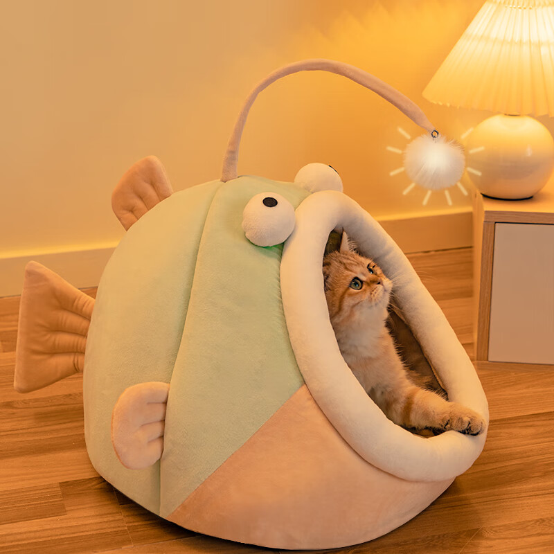 凛东猫窝四季通用幼猫睡觉狗窝半封闭猫房子床猫咪窝冬季保暖宠物用品 灯笼鱼升级款绿色毛球款 S6斤内猫狗60%的宠妈选择