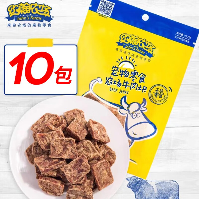 约翰农场小黄箱狗零食吃货箱鸡肉干成幼犬泰迪宠物训练奖励宠物零食10包 牛肉块100g*10包
