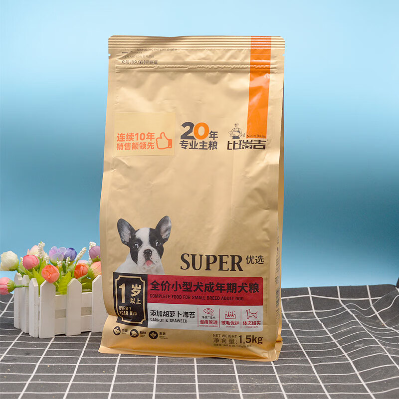 比瑞吉小型成犬老年犬专用狗粮泰迪贵宾雪纳瑞比熊天然高领犬主粮 小型成犬粮1.5kg 狗粮