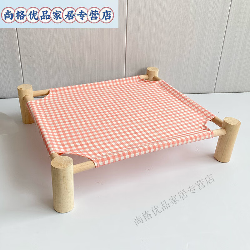 帕沐阁狗床小型犬狗狗行军床夏季宠物床离地狗窝夏床猫窝四季通用 粉色格子 M-中型50*46cm