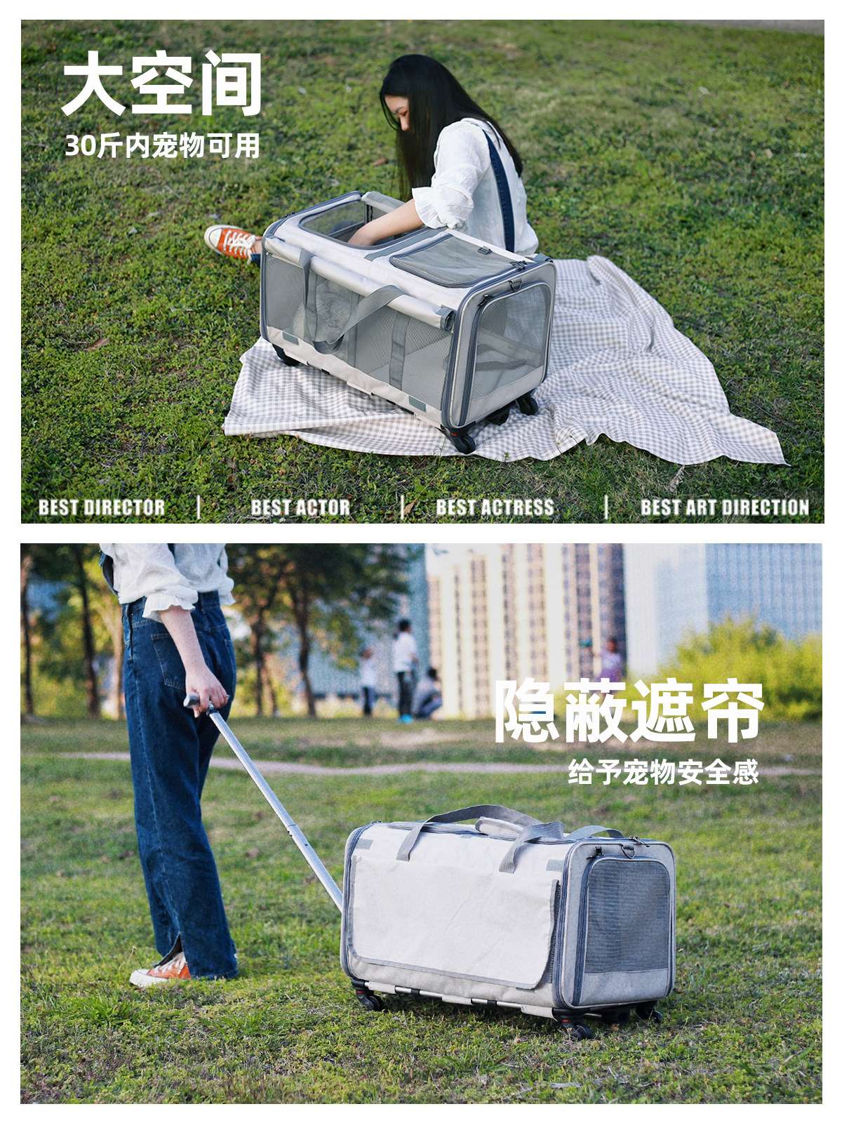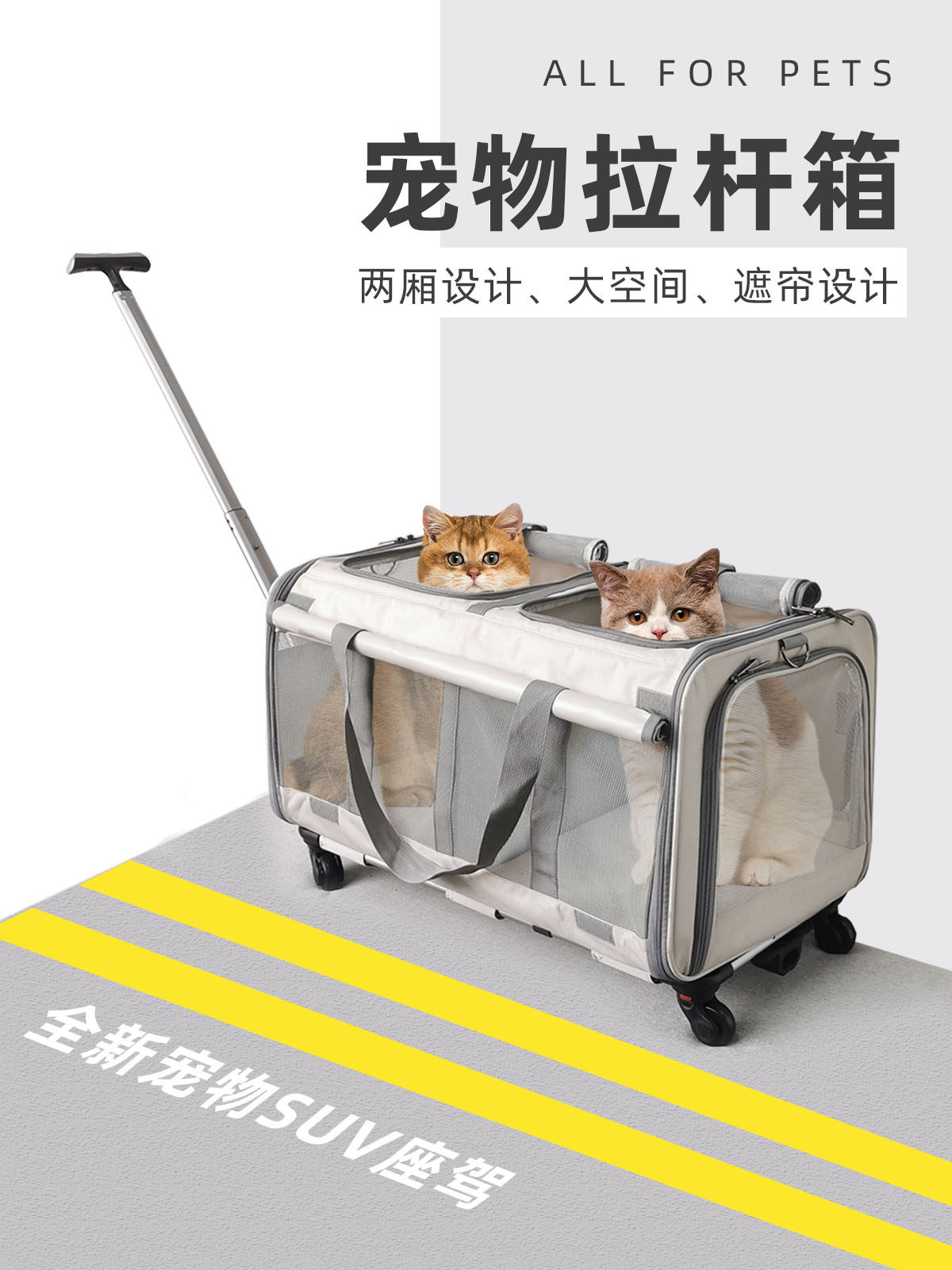 宠物拉杆箱大号双层两只猫外出便携猫包夏天宠物拆卸透气折叠狗包
