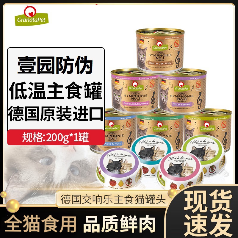 ROYLCA德国Granatapet交响乐猫罐头金交罐头牛肉鸡肉无谷主食湿粮200g 金交响乐罐头 1号牛肉家禽-200G 壹园防伪标