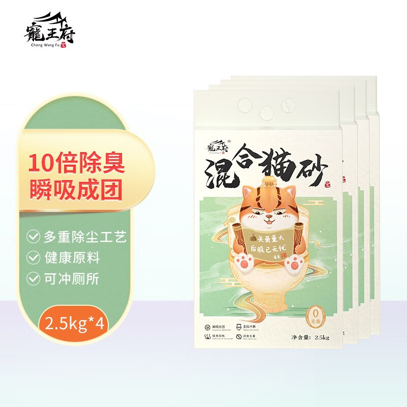 宠王府 原味混合猫砂2.5kg*4 去味除臭无尘豆腐可冲马桶猫咪猫沙