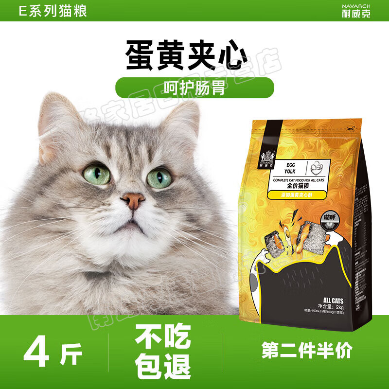 耐威克(Navarch)全期夹心喵酥猫粮全价成猫幼猫老年4斤增肥发腮英短蓝猫粮 蛋黄夹心4斤呵护肠胃 2/kg