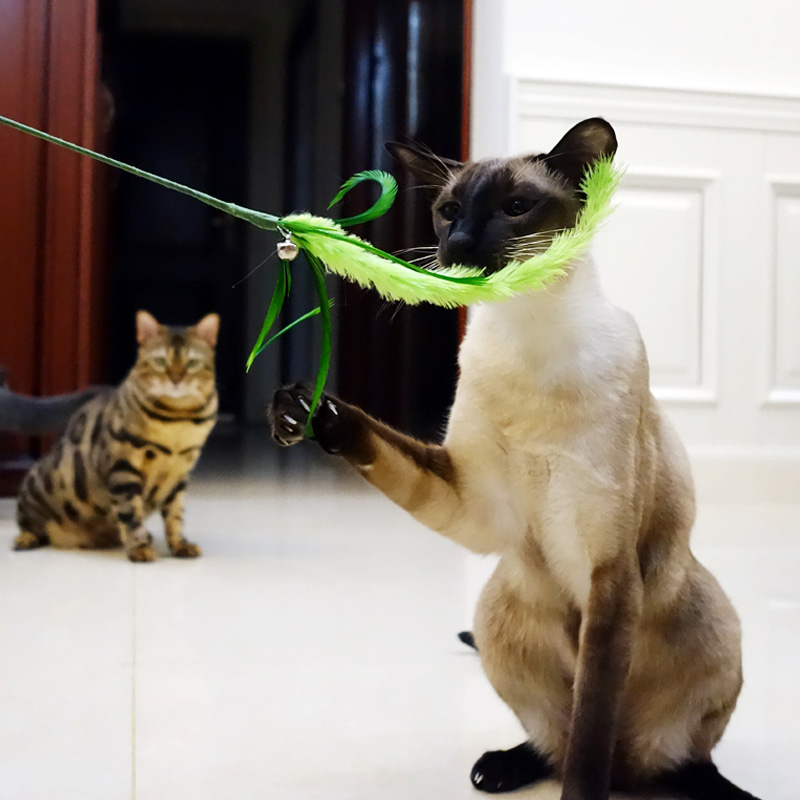 田田猫狗尾巴草羽毛长杆自嗨解闷逗猫棒带铃铛耐咬逗猫神器猫玩具