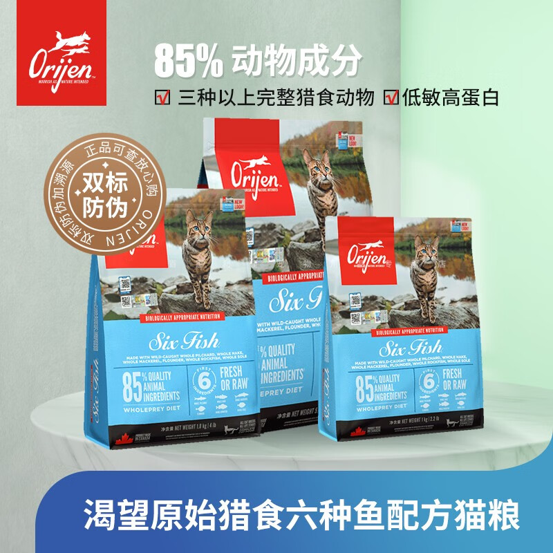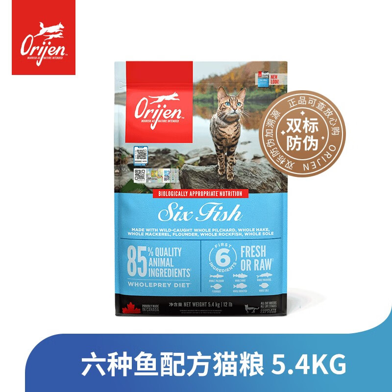 原始猎食渴望(ORIJEN)六种鱼全猫粮原装进口双标鱼肉无谷全期猫主粮营养猫粮宠物食品 5.4kg【效期23.9.1】