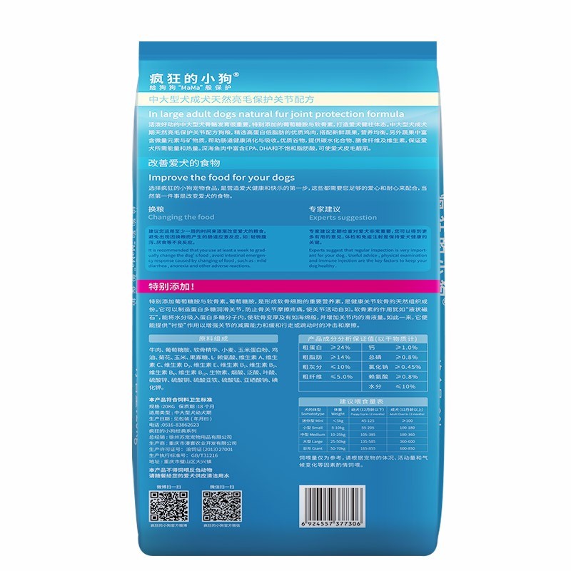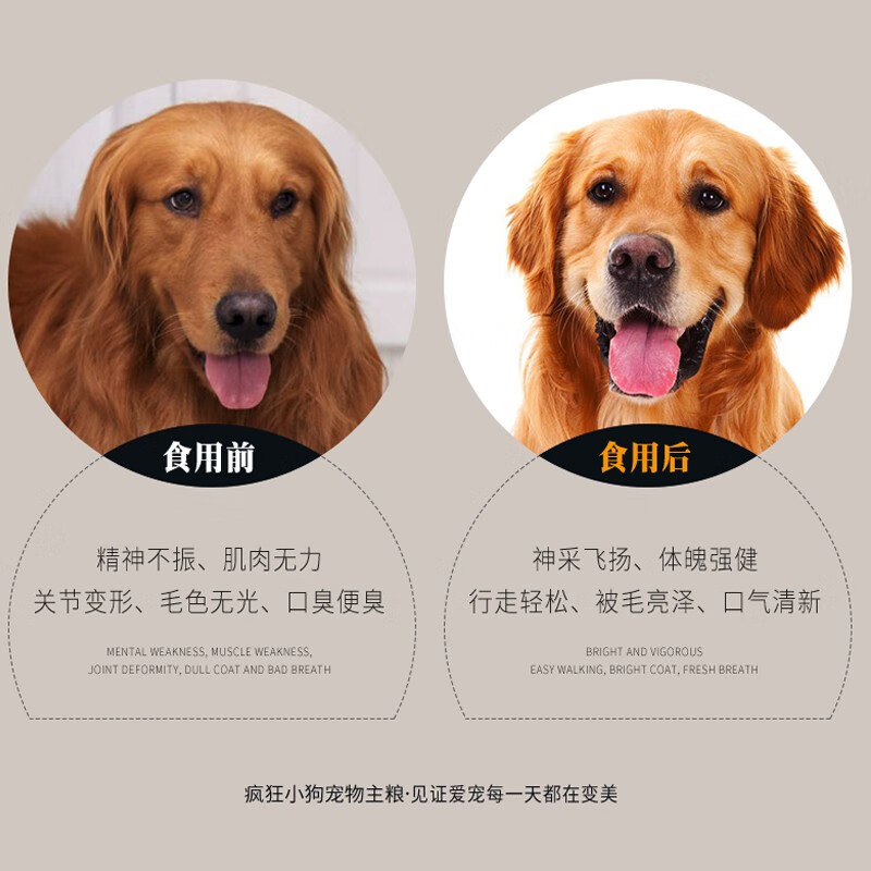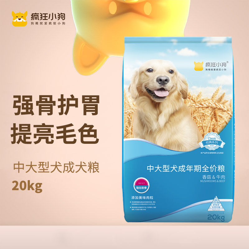 疯狂小狗金毛拉布拉多阿拉斯加柴犬萨摩耶德牧宠物幼成犬狗粮香菇牛排味 20kg(中大型犬成年期通用)