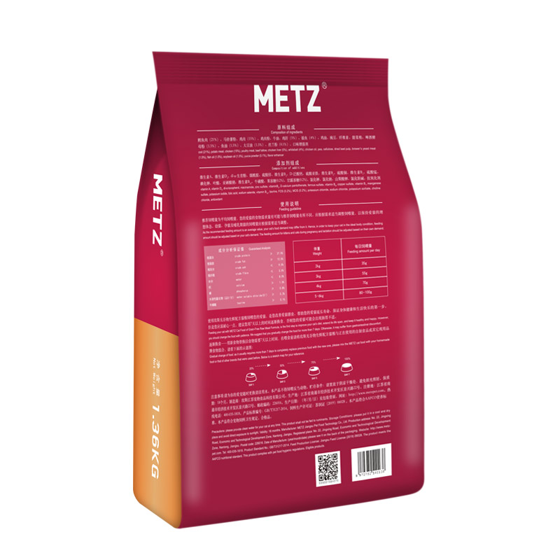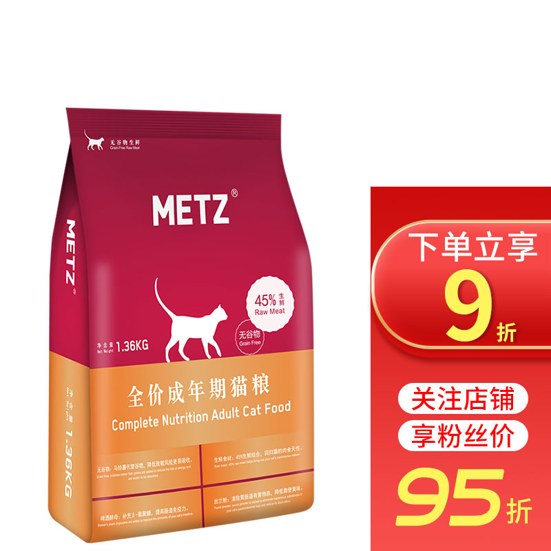 玫斯(metz)猫粮 无谷天然猫粮鲜肉粮 幼猫粮成猫粮全猫粮蓝猫英短美短全价美毛猫粮 成猫粮 1.36kg(12月及以上)