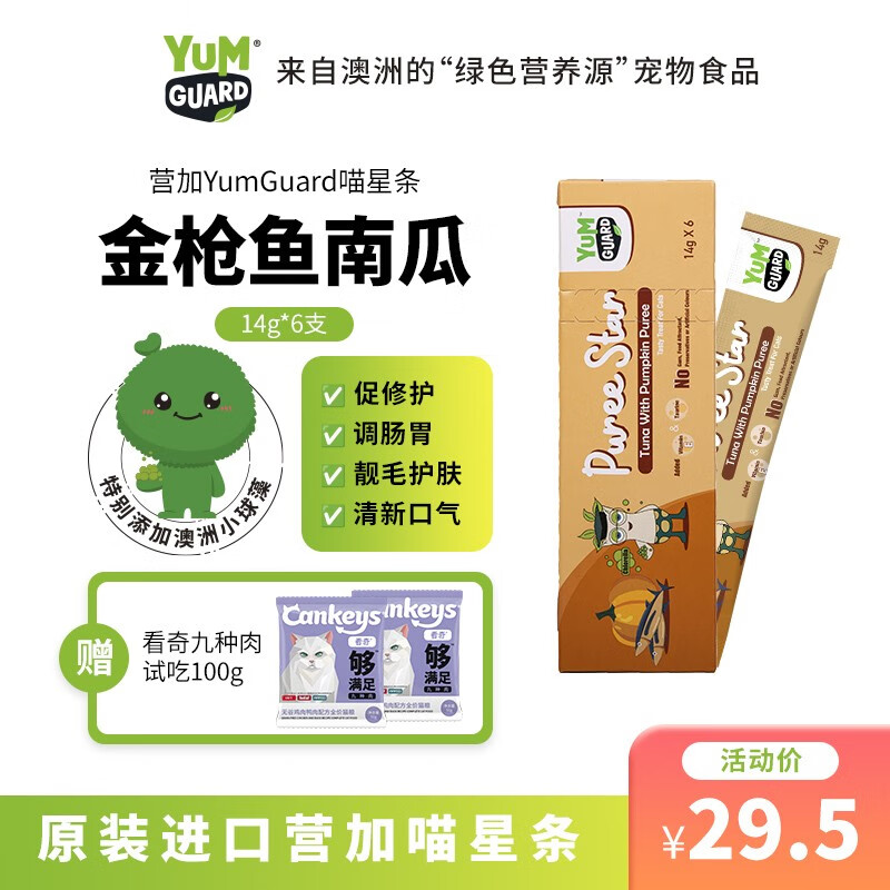 营加(YumGuard)原装进口猫零食猫条 宠物湿粮 猫咪果泥 添加澳洲小球藻 金枪鱼南瓜14g*6支