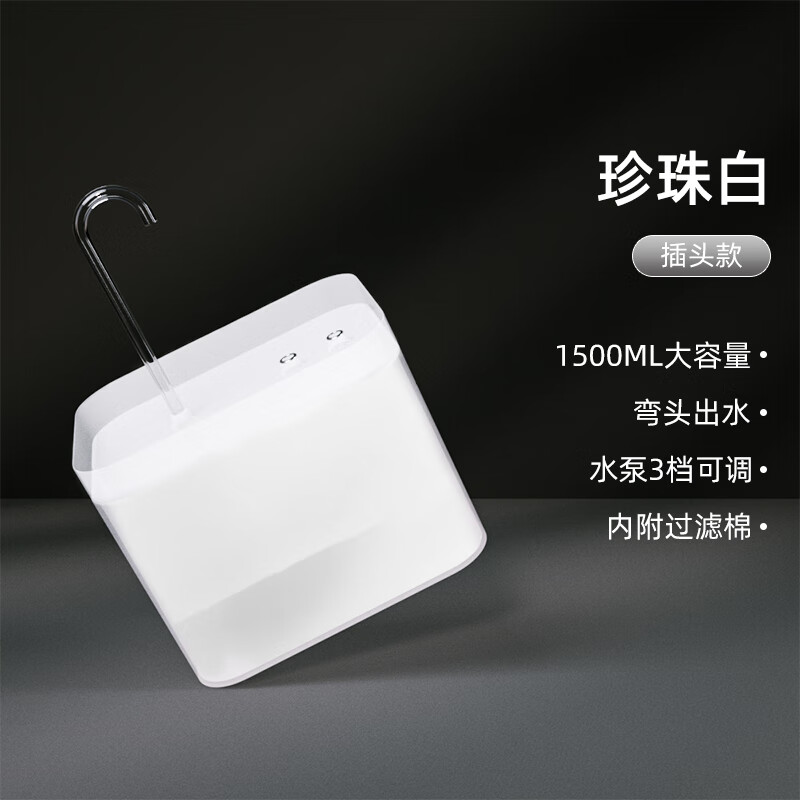 猫咪饮水机自动循环流动饮水盆活水喂水碗宠物用品喝水器狗狗神器 珍珠白插头款 1500ml