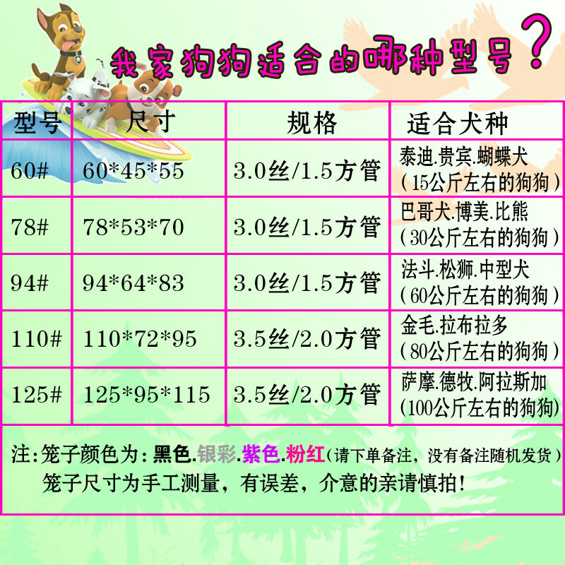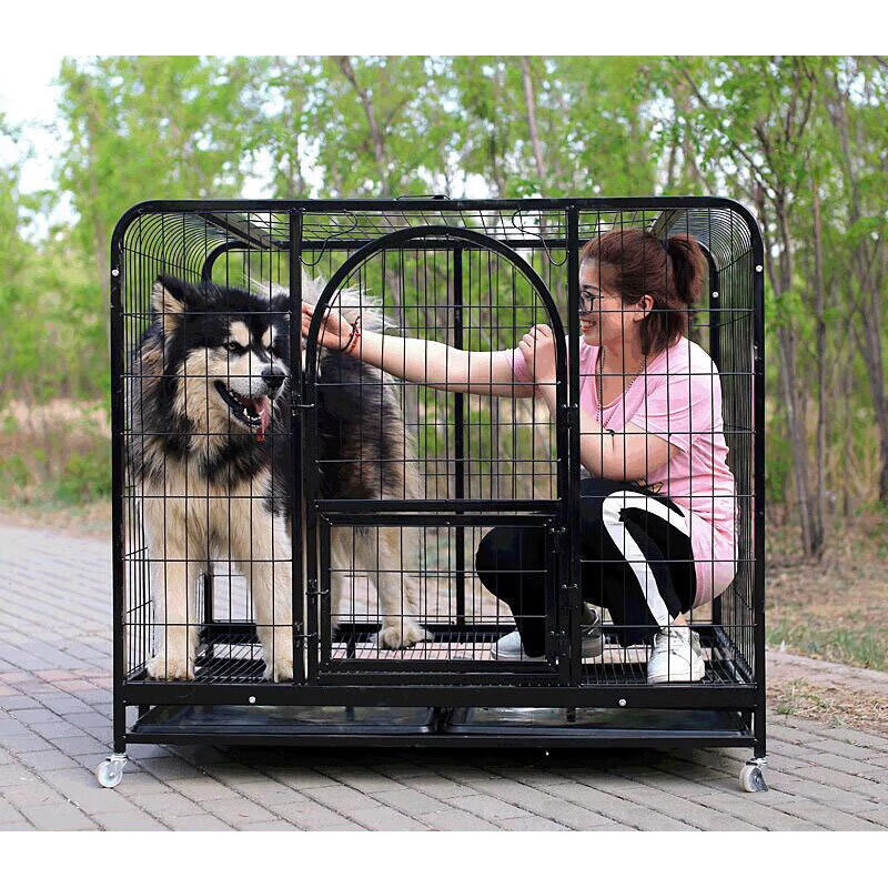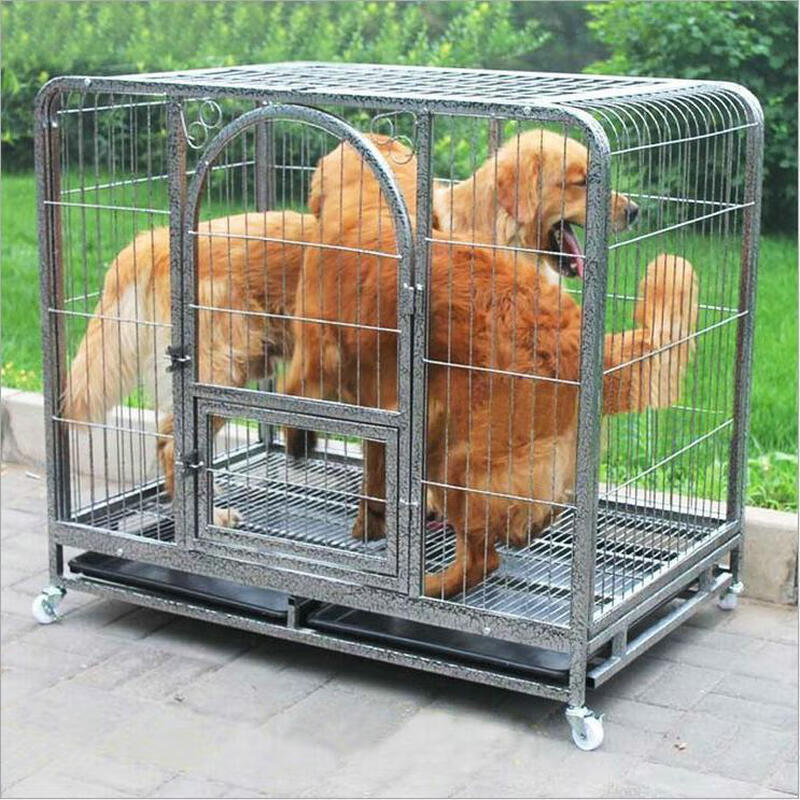 笼趣方管狗笼子宠物窝金毛狗笼泰迪博美宠物笼宠物床狗狗笼铁丝笼狗窝 粉色 125方管(125*95*115)