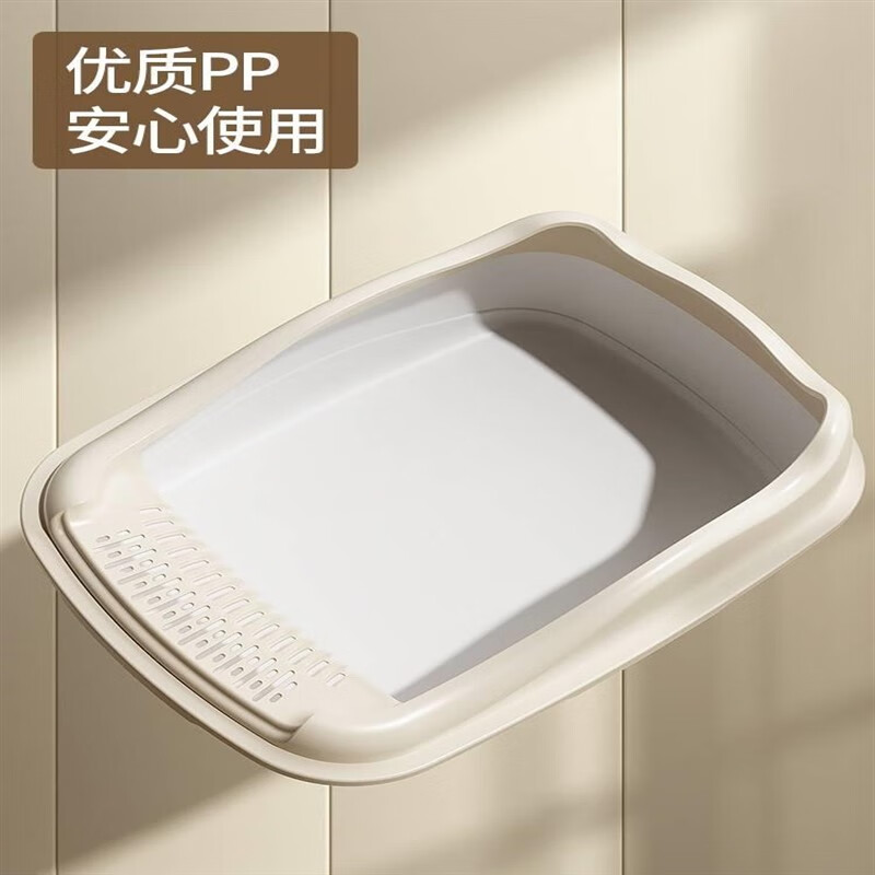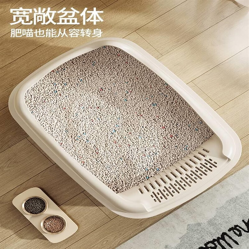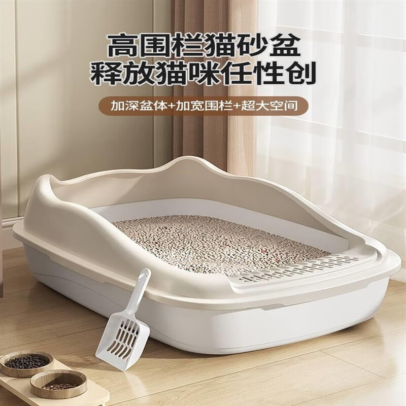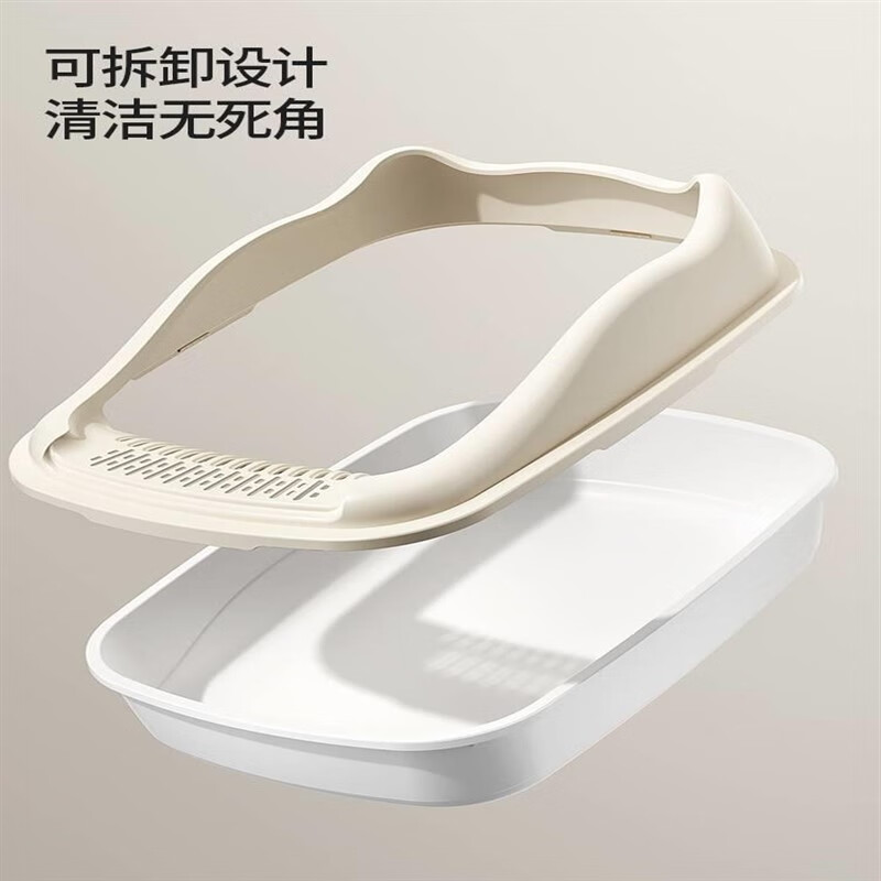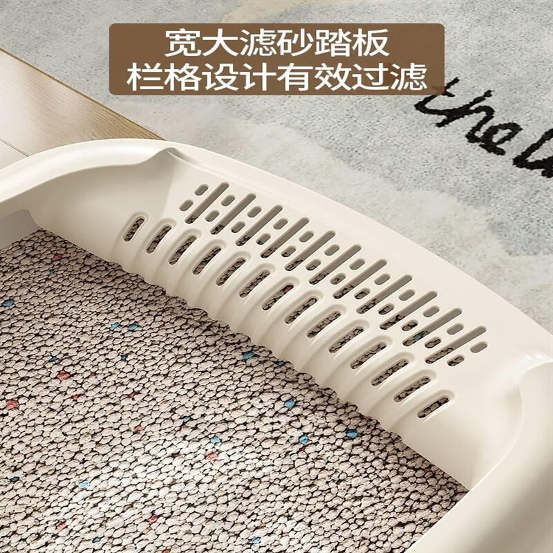 凛东猫砂盆超大号半封闭防带砂隔臭小号幼猫咪厕所笼子专用猫屎盆用品 奶油白-特大号适用成年猫送猫砂