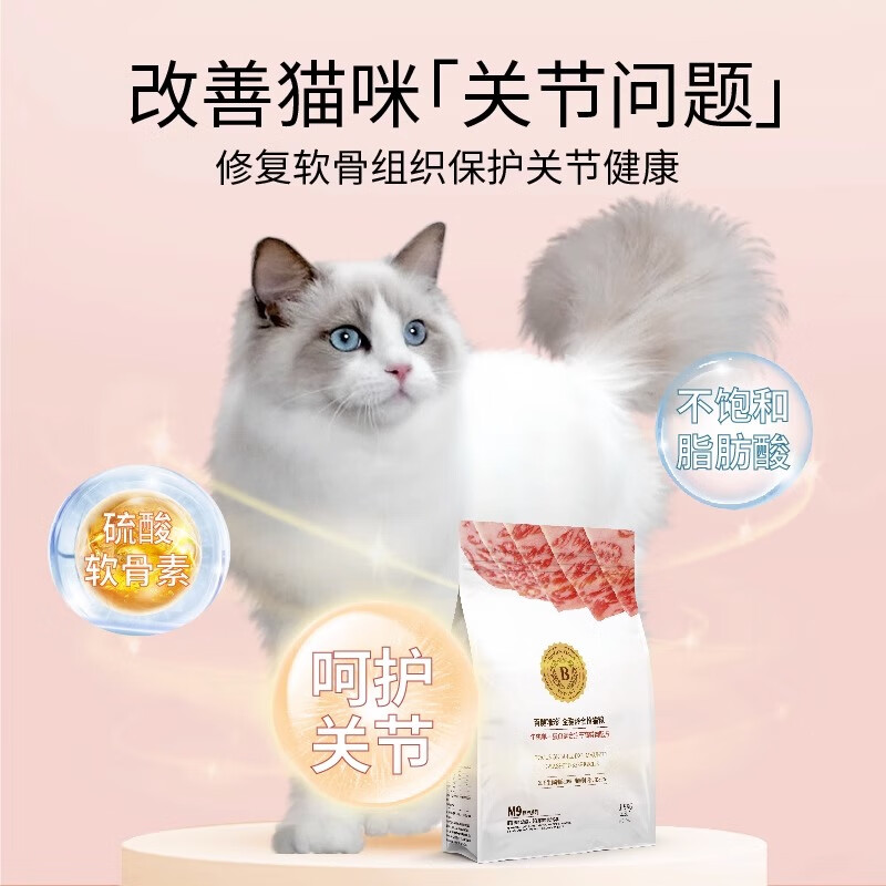 百健唯珍甄鲜系列猫粮鲜肉无谷低敏猫主粮冻干粮鸡肉配方猫干粮成幼猫通用 M9牛肉鲜肉猫粮1.5kg/袋