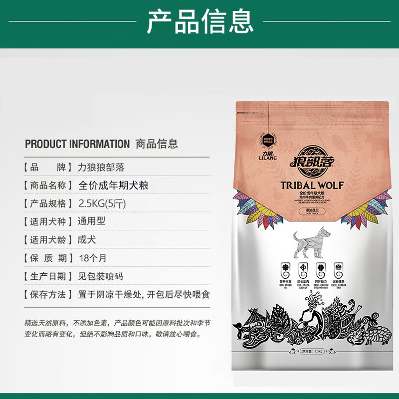 狼部落狗粮泰迪阿拉斯加比熊巴哥英牛金毛贵宾萨摩耶通用型 成犬狗粮2.5kg5斤