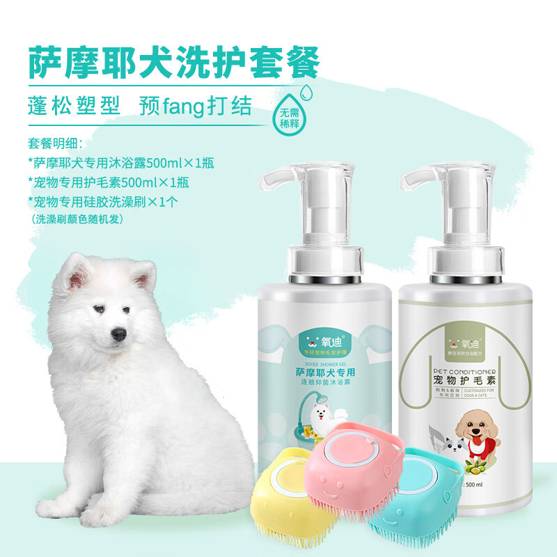 氧迪[新疆可发]萨摩耶犬专用狗狗沐浴露宠物洗澡用品除臭抑菌止痒留香 萨摩耶沐浴露 护毛素 洗澡刷