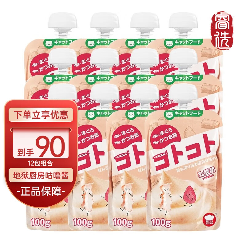 地狱厨房(Hell's Kitchen)经典咕噜酱猫咪零食成猫湿粮包猫条牛肉松茸肉泥猫零食 金枪鱼柴鱼片 100g*12包