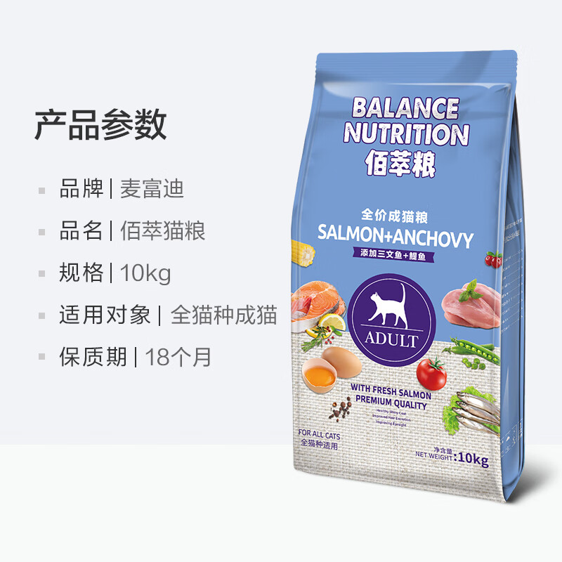 麦富迪(Myfoodie)猫粮佰萃成猫10kg英短美短蓝猫全价营养通用天然粮20斤装 鱼肉味 10kg