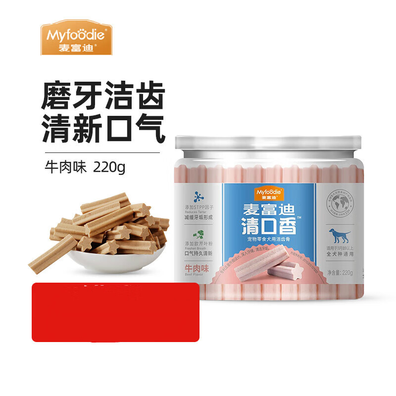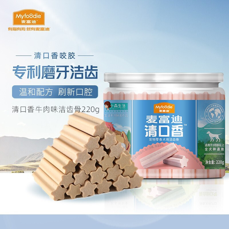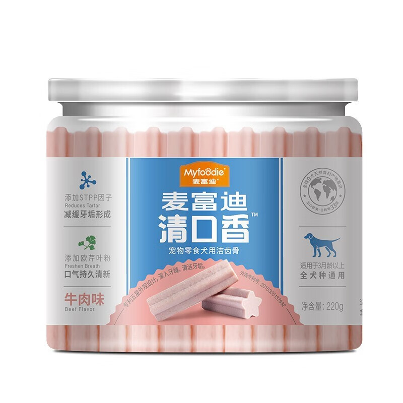 麦富迪清口香220g磨牙棒狗咬胶洁齿骨贵宾泰迪幼犬成 清口香牛肉味220g