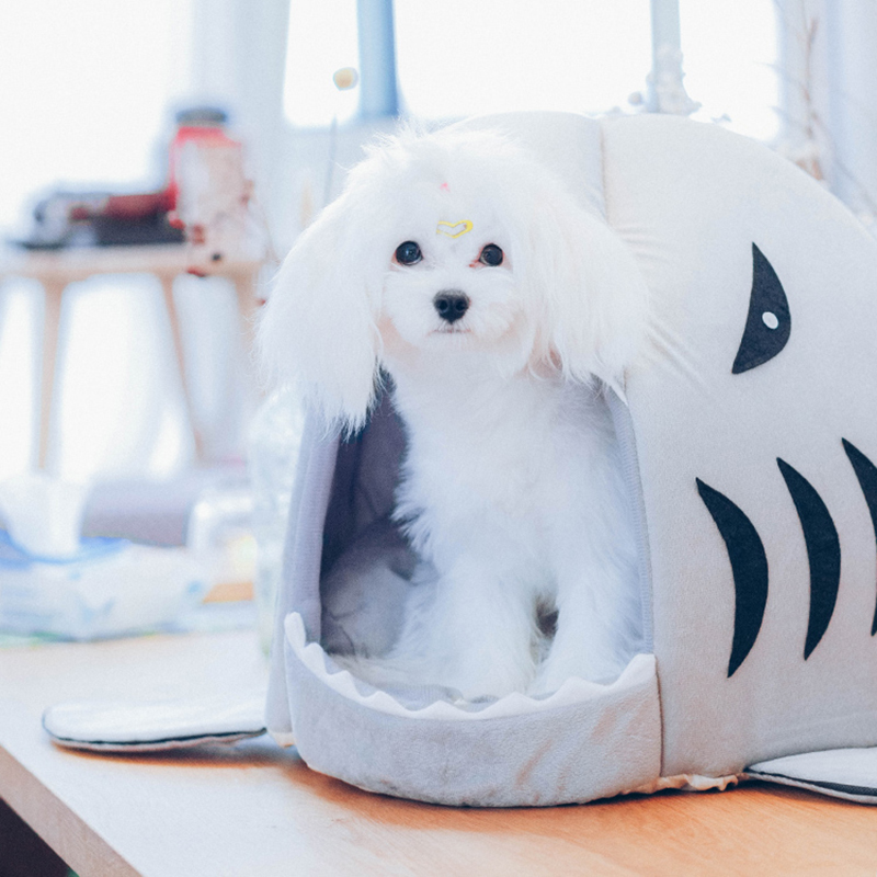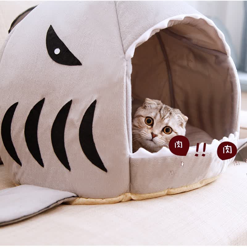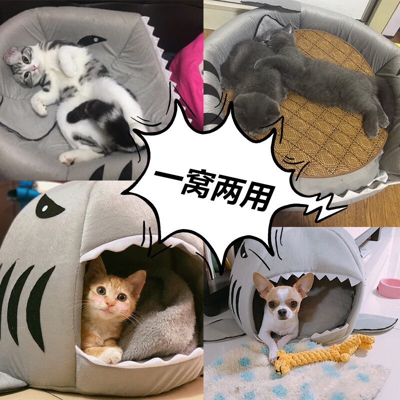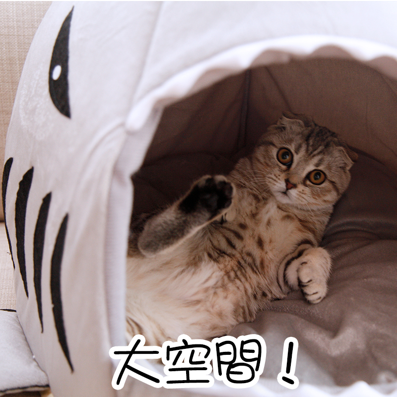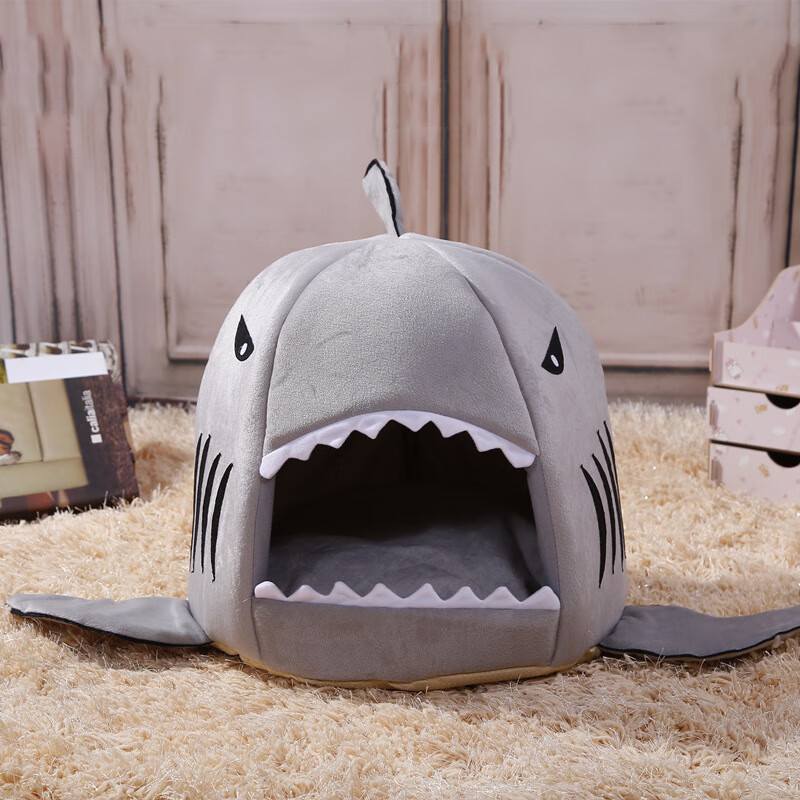 悠梵萌猫窝四季通用鲨鱼窝冬季保暖猫舍猫屋封闭式狗窝猫床猫咪用品M号1个