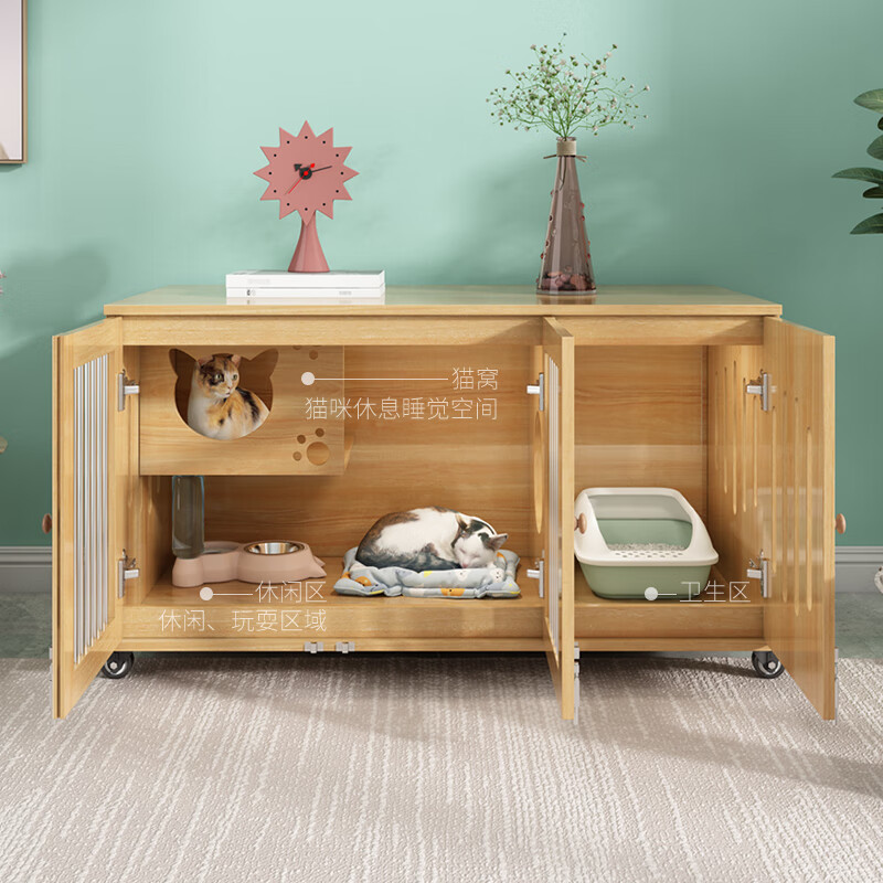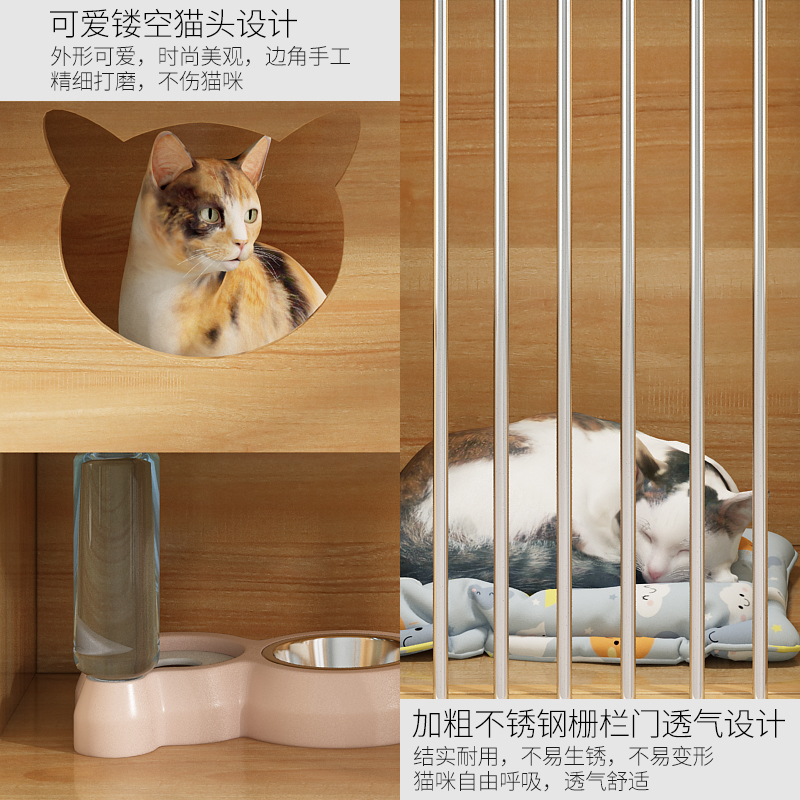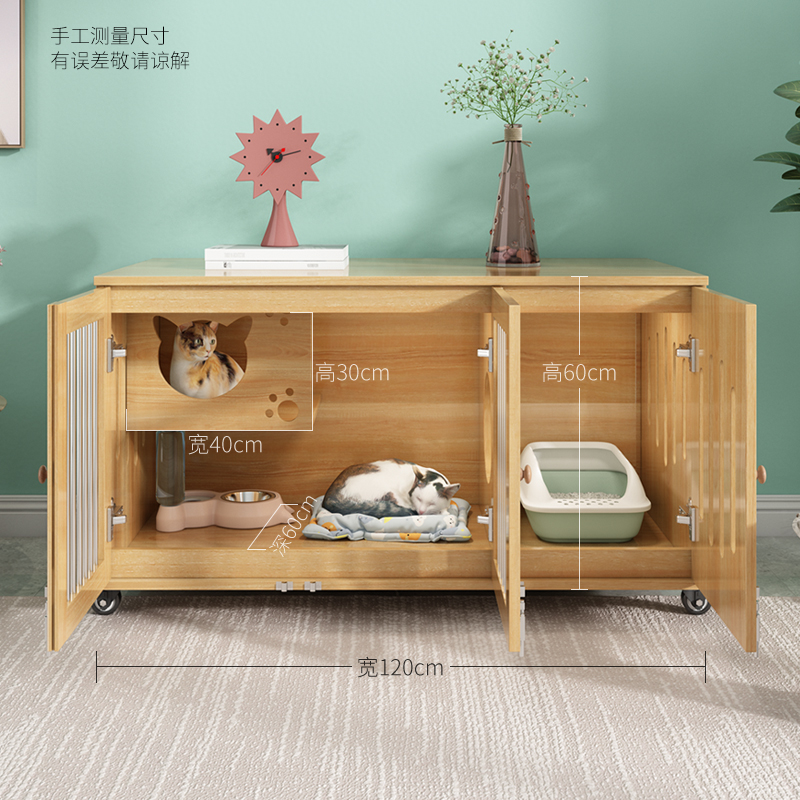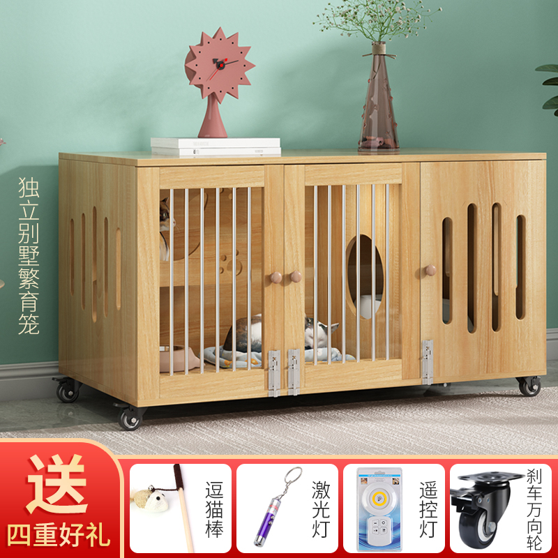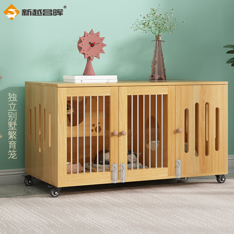新越昌晖猫笼子猫别墅实木生态板猫柜子 猫窝猫屋猫舍猫房子 豪华宠物屋透气可移动式展示柜高60宽120*深60cm