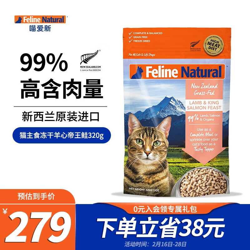喵爱新【顺丰快递】 K9猫粮 猫冻干 新西兰进口成幼猫通用主食冻干粮 羊心帝王鲑320g