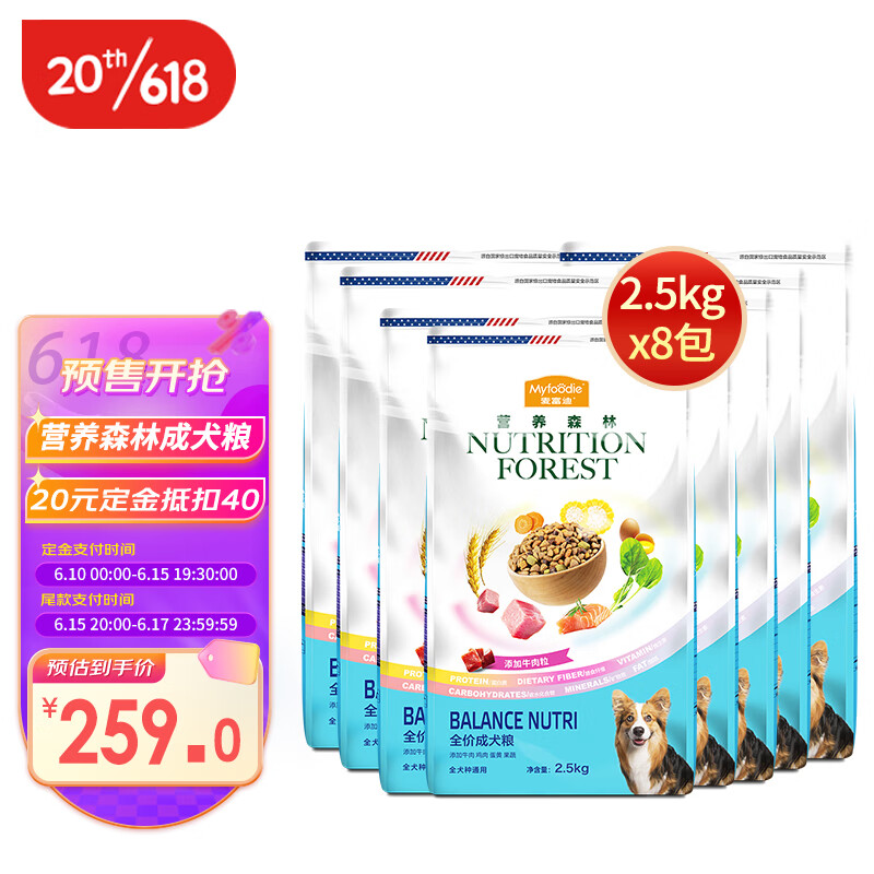 麦富迪狗粮营养森林小中大型犬通用型犬粮 通用成犬粮20kg(2.5kg*8袋)