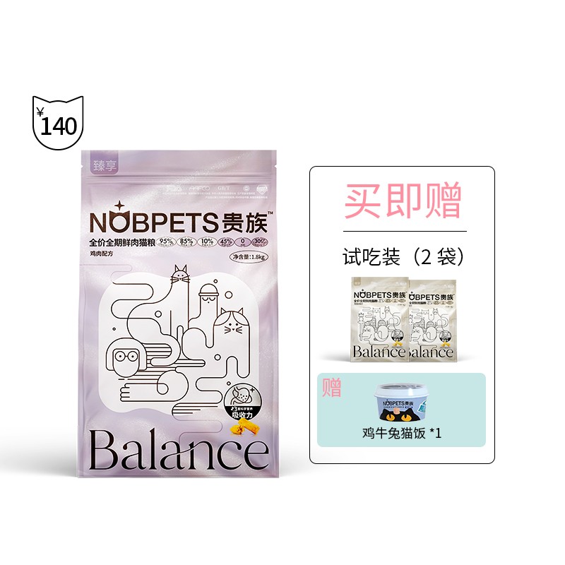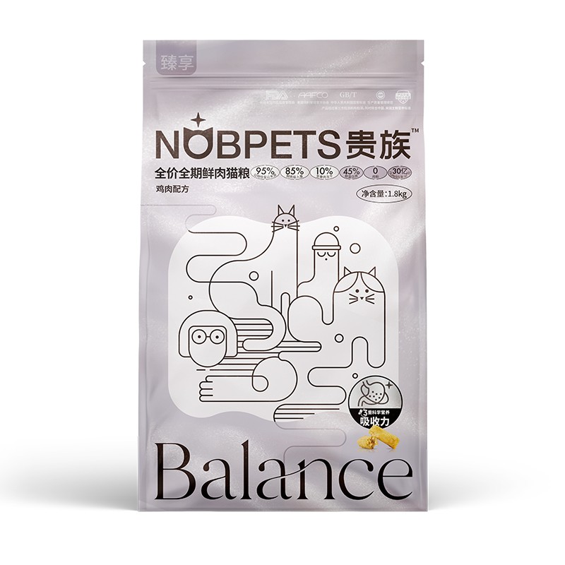 贵族NOBPETS 鲜肉猫粮 成猫冻干生骨肉 95双拼鲜肉粮 全价无谷 成猫/幼猫 奶糕全期猫粮 贵族臻享鲜肉猫粮鸡肉配方1.8kg