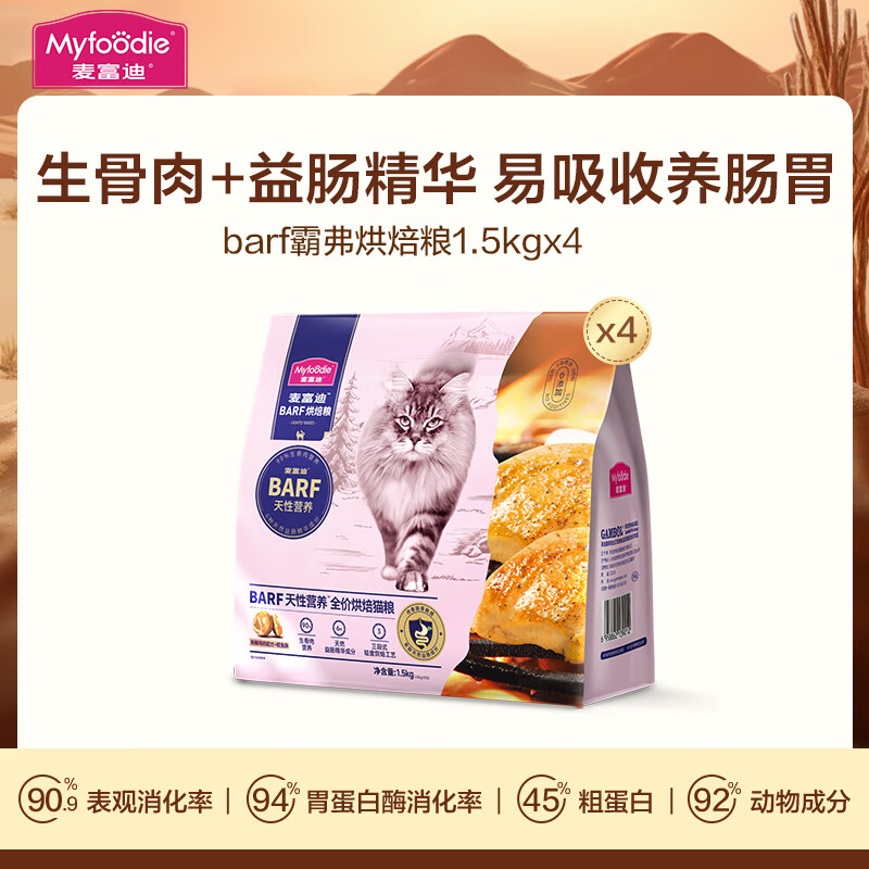 麦富迪(Myfoodie)barf霸弗全价低温烘焙猫粮营养成幼猫通用粮1.5kg*4 新鲜鸡肉配方 鳕鱼酥 6kg [1.5kgx4]