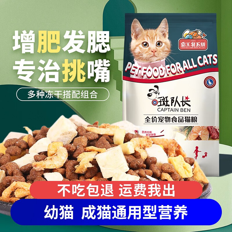 斑队长【冻干含量≥5%】幼猫成猫全阶段适用 营养增肥补钙鱼味冻干猫粮 霸王餐五拼-4斤装
