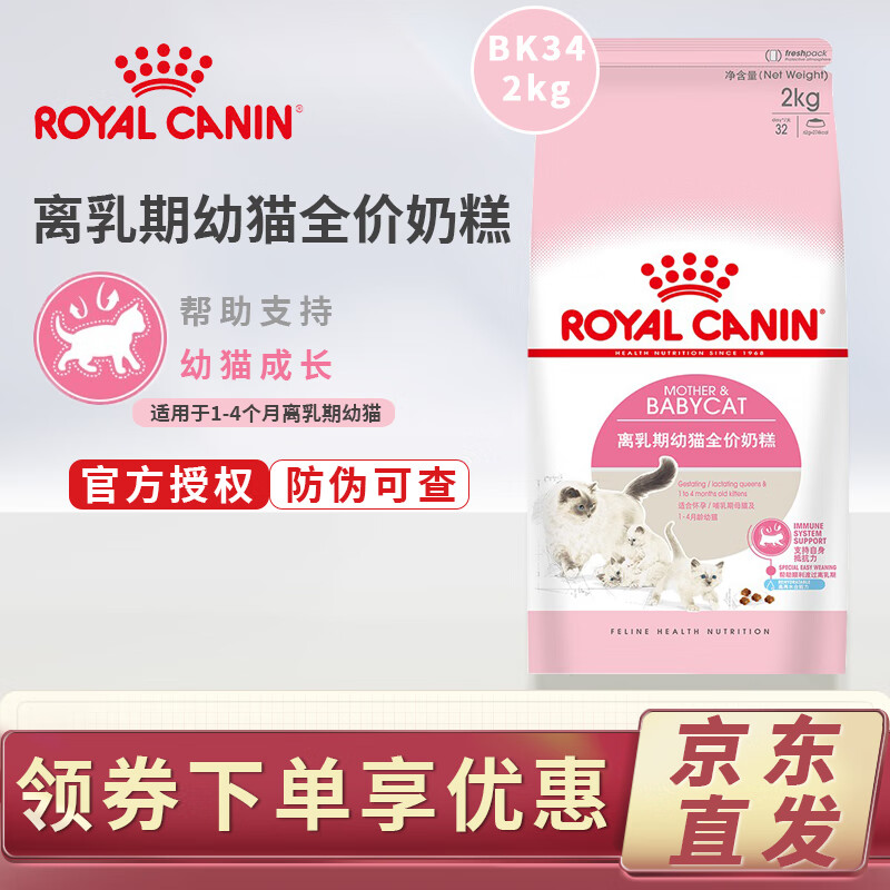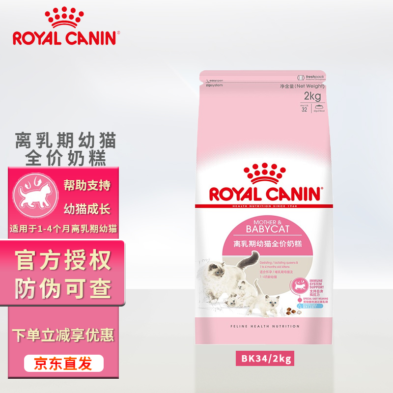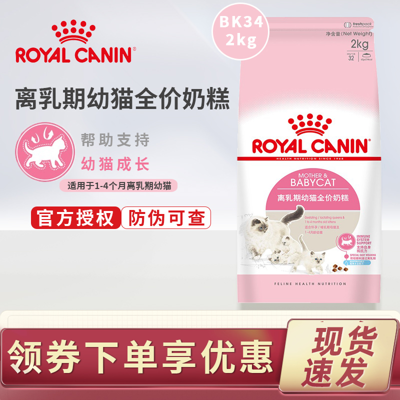 皇家猫粮BK34猫全价粮1-4月龄幼猫怀孕及哺乳期母猫提离乳奶糕必备猫粮 2kg