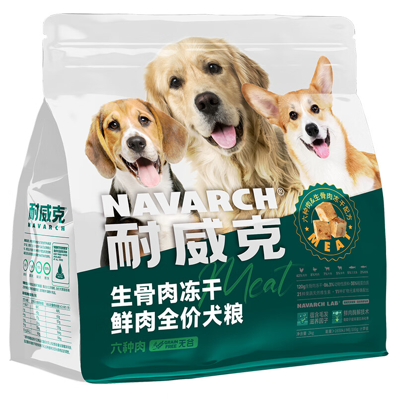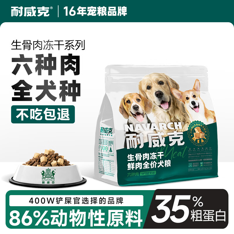 耐威克(NAVARCH)六种肉狗粮冻干生骨肉狗粮2kg 六种肉无谷配方35%粗蛋白 生骨肉冻干|六种肉狗粮2kg