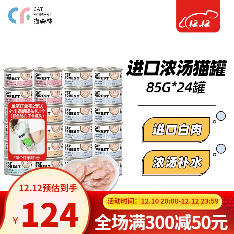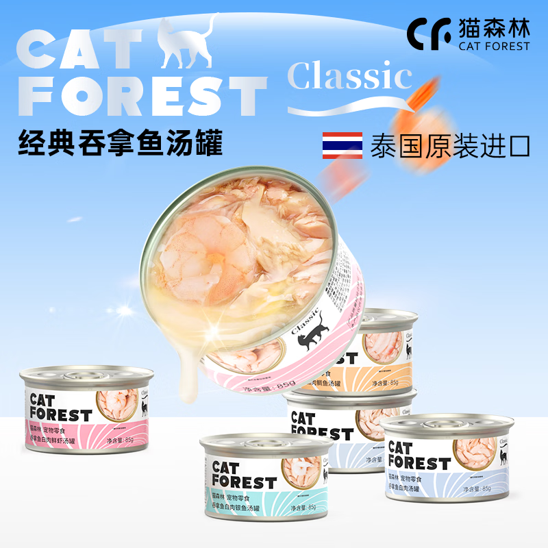 猫森林猫罐头猫咪零食成猫幼猫营养白肉主食罐进口24罐整箱 【经典款】进口白肉汤罐混合口味85g*24罐