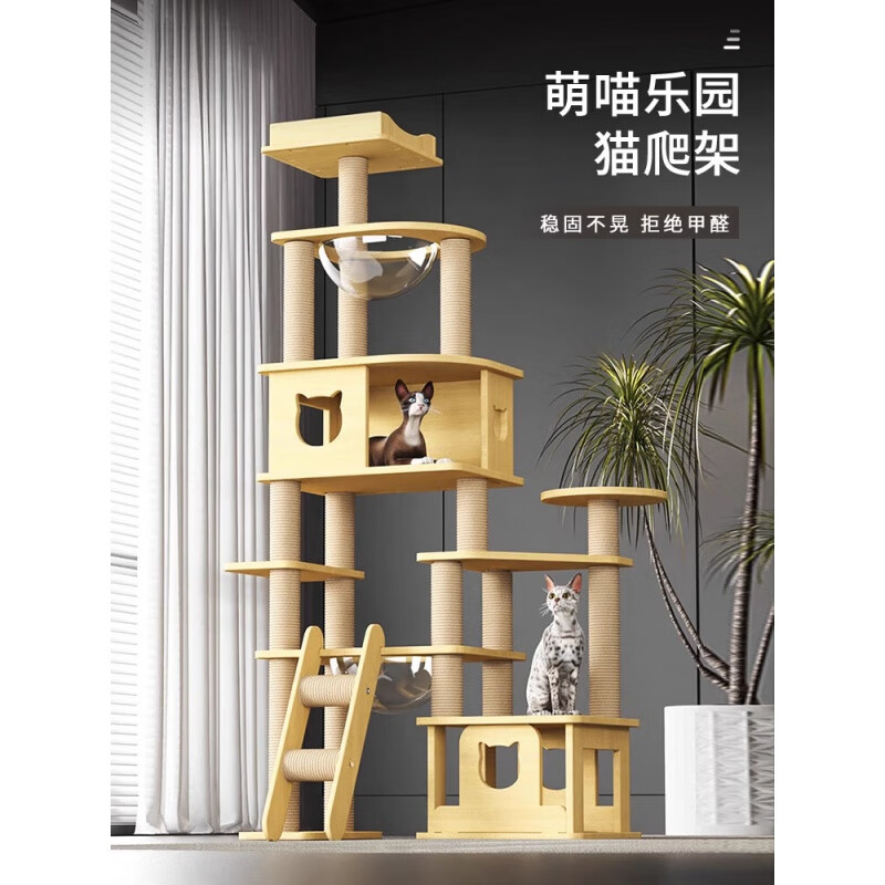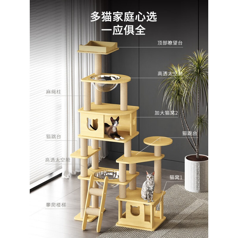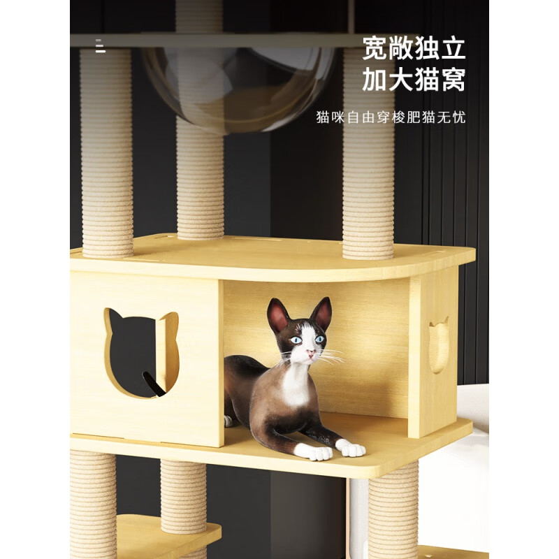 贝亚猫爬架猫窝猫树一体太空舱猫爬架子猫抓柱通天柱实木猫跳台 【萌喵乐园Y7】小猫专用升级实木柱