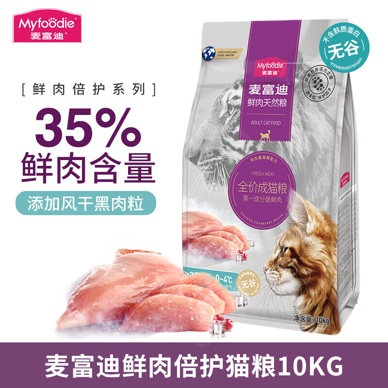 麦富迪(Myfoodie)猫粮 鲜肉倍护全价成猫粮10kg 鸡肉蔓越莓配方20斤 成猫粮10kg