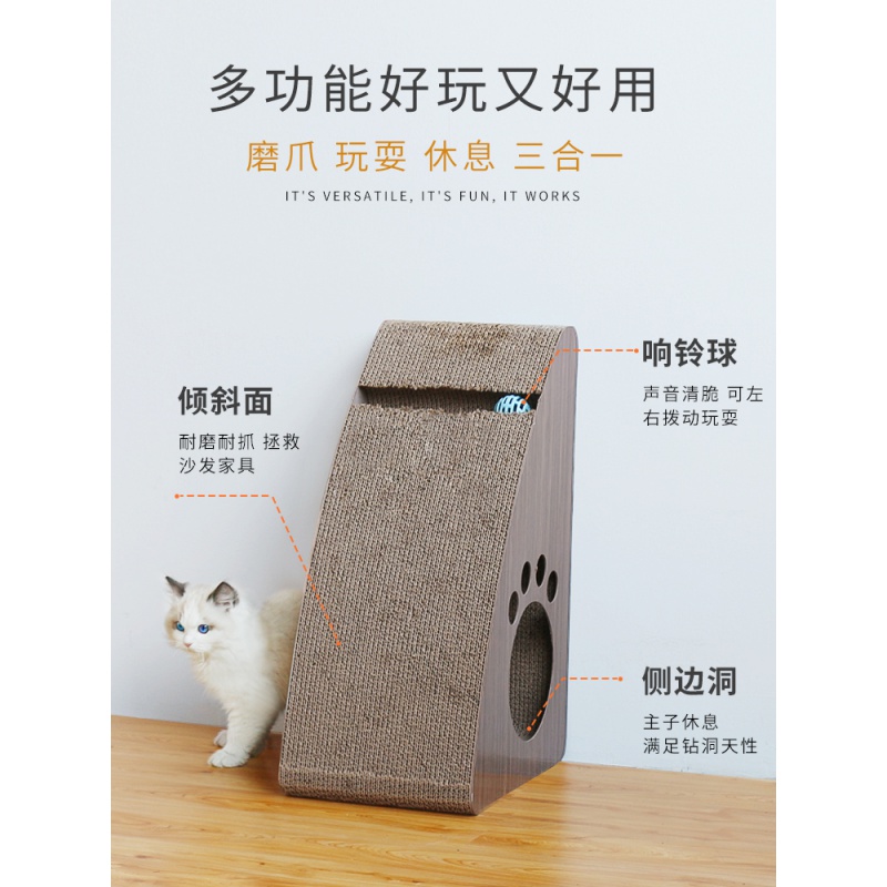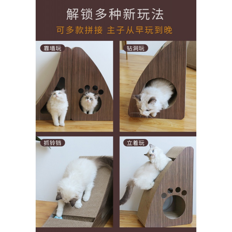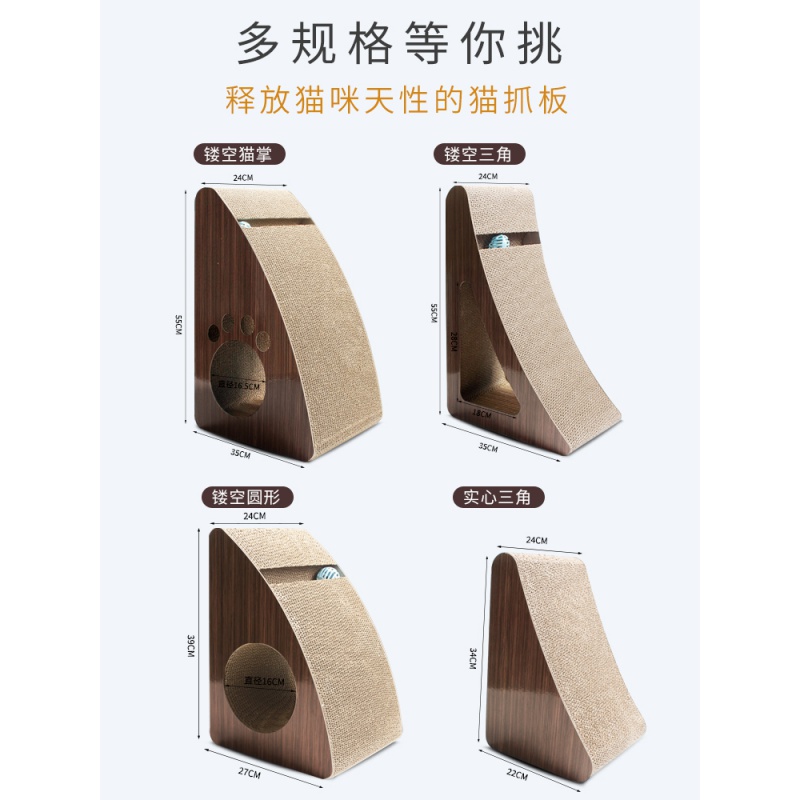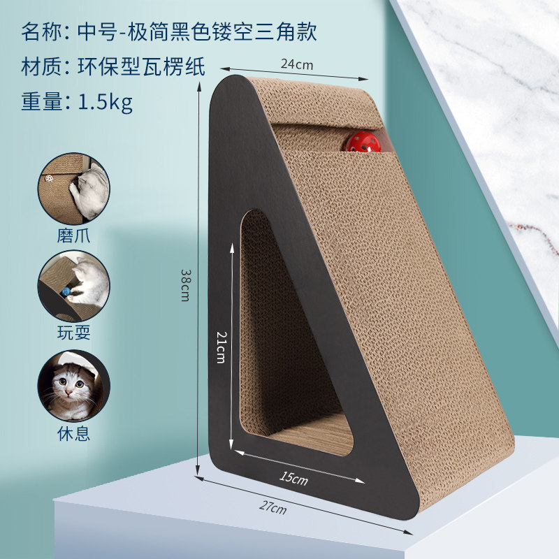 小佩猫抓板猫窝猫咪磨爪神器立式抓柱猫玩具猫爪板防抓沙发瓦楞纸窝耐磨猫咪用品 中号-极简黑色镂空三角款