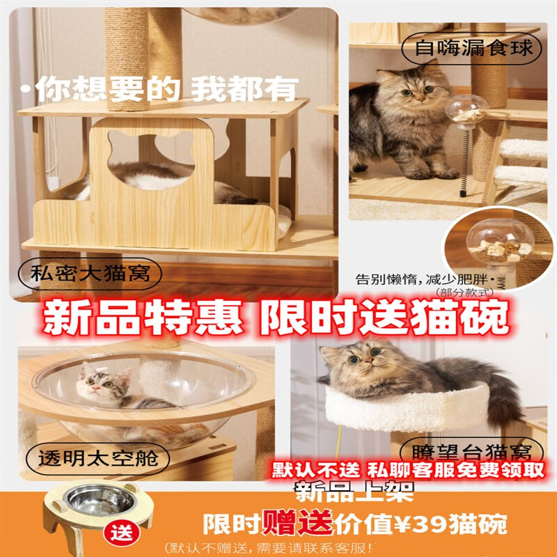猫爬架猫窝猫树一体猫抓板猫咪用品猫笼实木太空舱猫爬架子猫架 红色