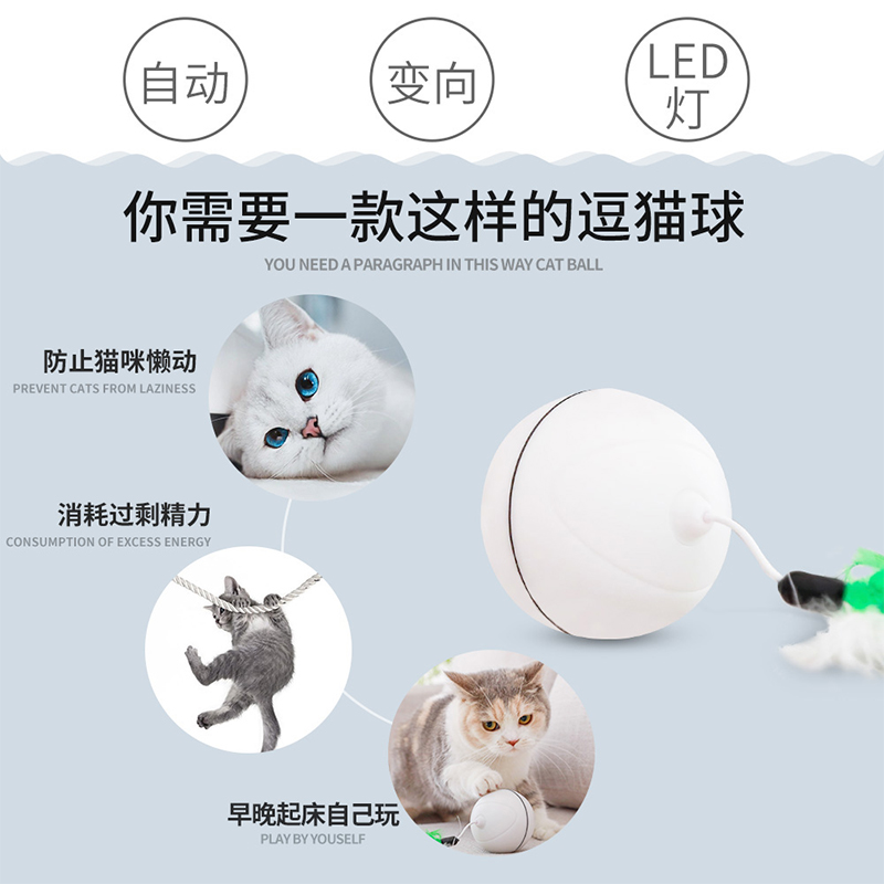润华年逗猫球自嗨解闷神器猫玩具球幼猫自动电动猫咪玩具逗猫棒猫猫用品JM 蓝色