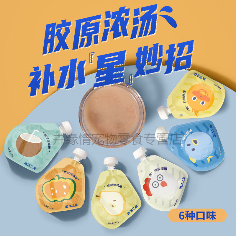 海洋之星宠物零食胶原汤100g*18猫零食狗零食猫湿粮包猫粮伴侣 随机混合3个口味100g*18袋 1800g