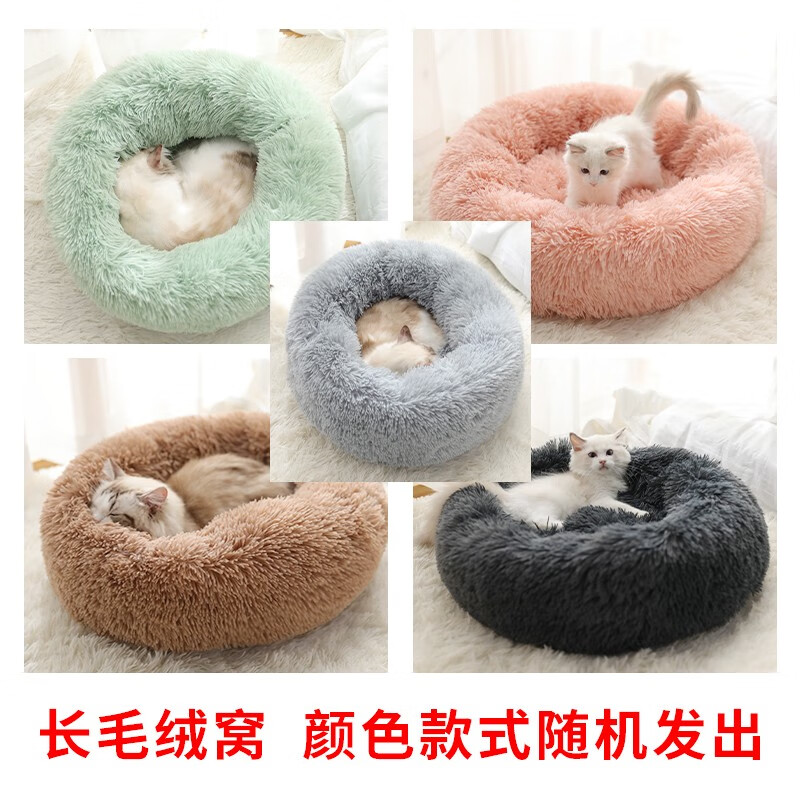 KimPets狗窝猫窝冬季保暖四季通用小型犬泰迪沙发床狗狗床大型犬宠物垫子 毛绒窝【颜色款式随机】 XS-直径35cm【适用4斤内狗狗】新