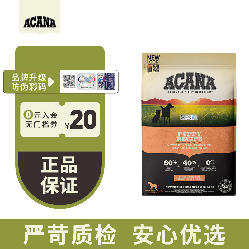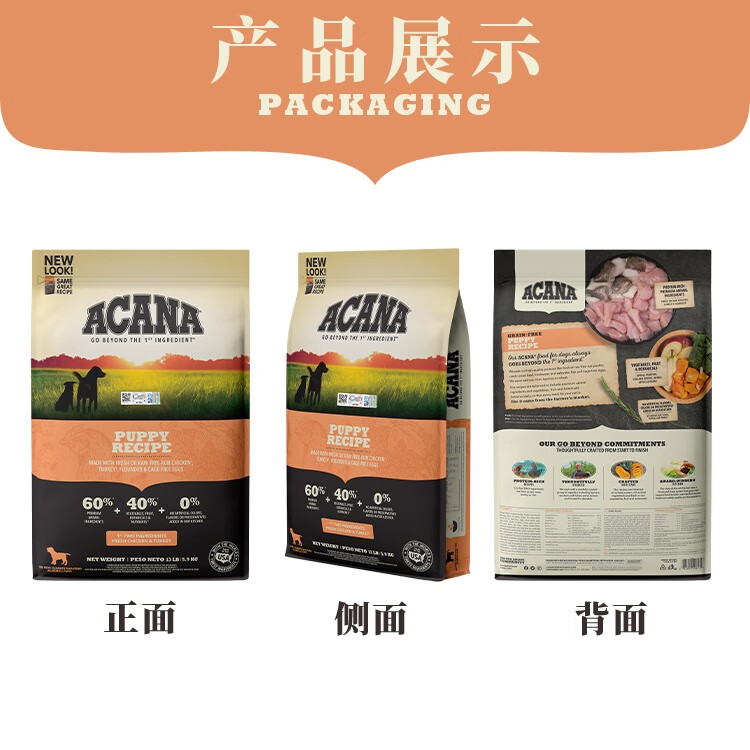 爱肯拿(ACANA)美版进口狗粮草原家禽小型幼犬高蛋白营养鸡肉粮5.9kg 小型幼犬粮