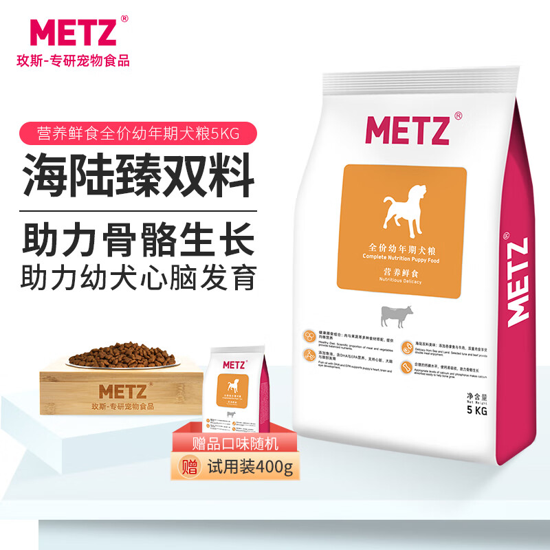 玫斯(metz)狗粮 营养鲜食全价系列金毛柯基拉布拉多泰迪法斗柴犬通用型主粮 幼犬粮5kg