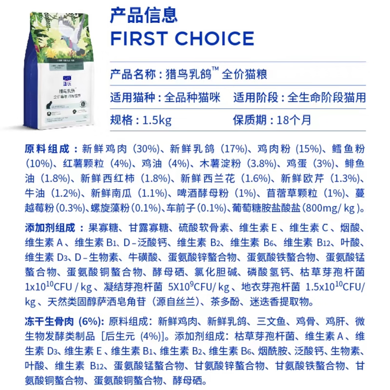 LEGEND SANDY 蓝氏乳鸽全价猫粮成猫幼猫生骨肉冻干粮1.5kg 全价猫粮/猎鸟乳鸽/1.5kg 全阶段猫咪