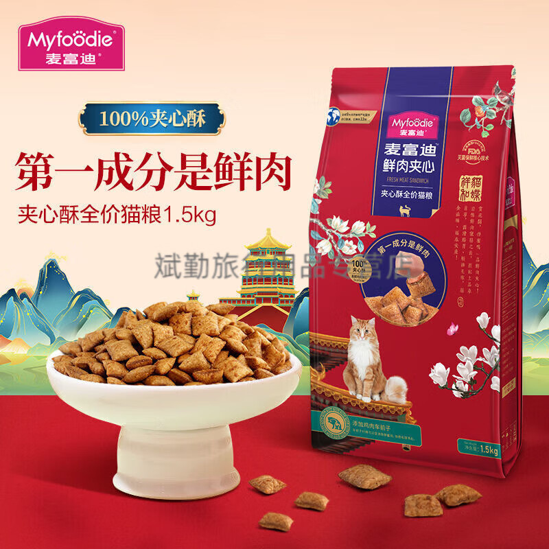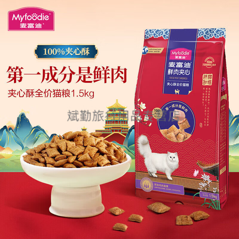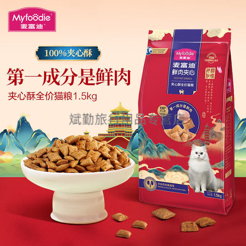 麦富迪猫粮鲜肉夹心酥1.5kg全价成猫美毛亮毛呵护泌尿排毛球3斤 1g 鸡肉蛋黄夹心酥猫粮1.5kg