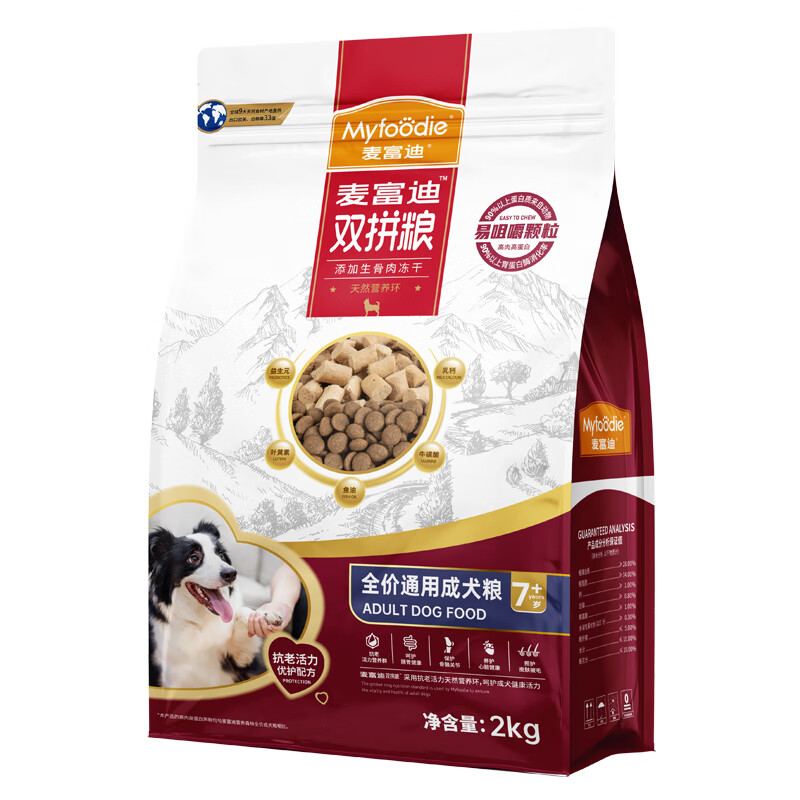 麦富迪(Myfoodie)老年犬狗粮成犬双拼粮通用泰迪柯基金毛高龄犬老狗专用狗粮 老年犬专用粮 2kg