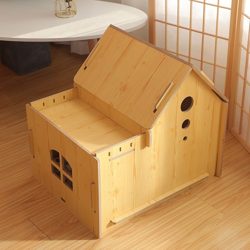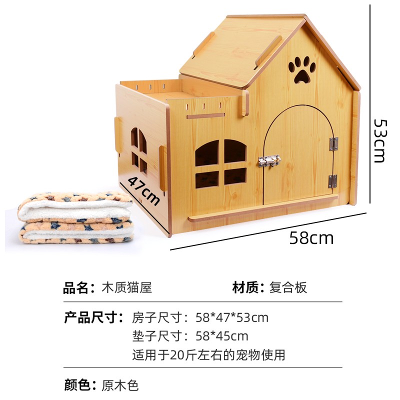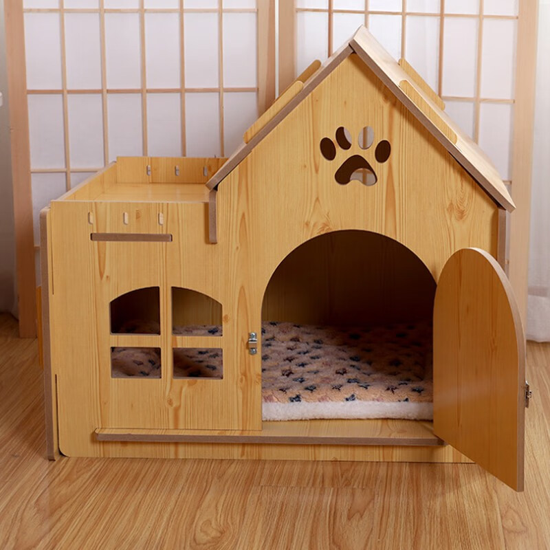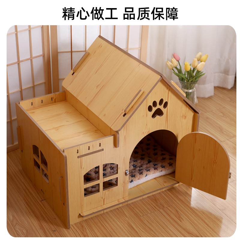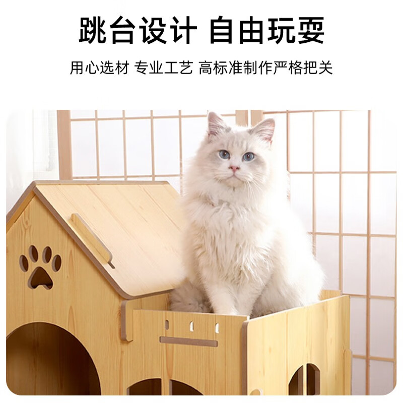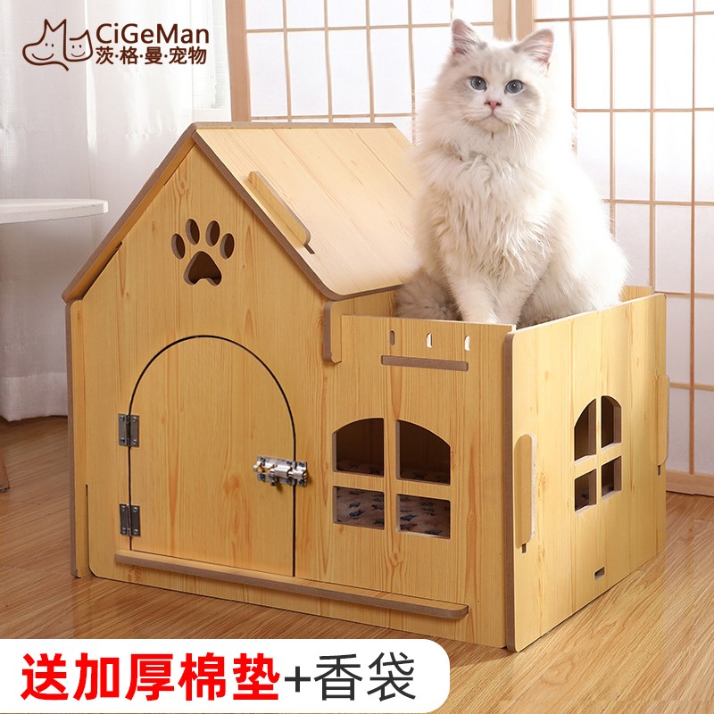 茨格曼 猫舍猫屋狗窝房子别墅【超大号带门】猫产房小型犬木屋室内四季通用猫窝全封闭 双层别墅 套装【加厚棉垫 香袋1个】