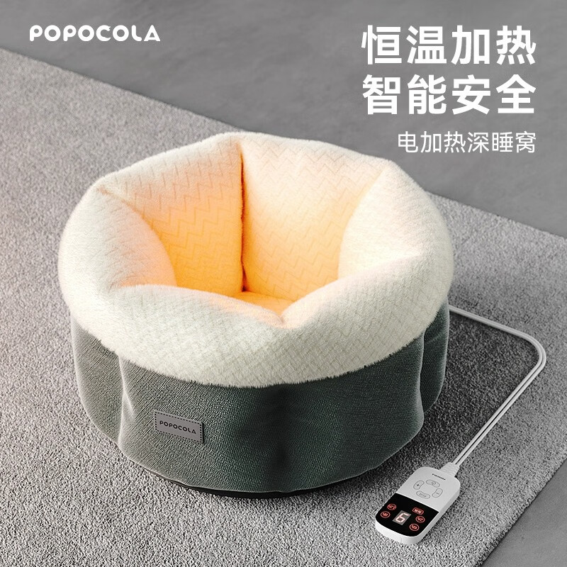 POPOCOLA猫窝冬季保暖电热毯加热发热冬天智能恒温幼猫咪屋全半封闭式猫窝 电加热深睡猫窝 法兰绒毯 全年龄猫咪通用