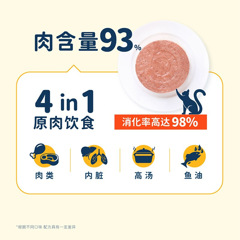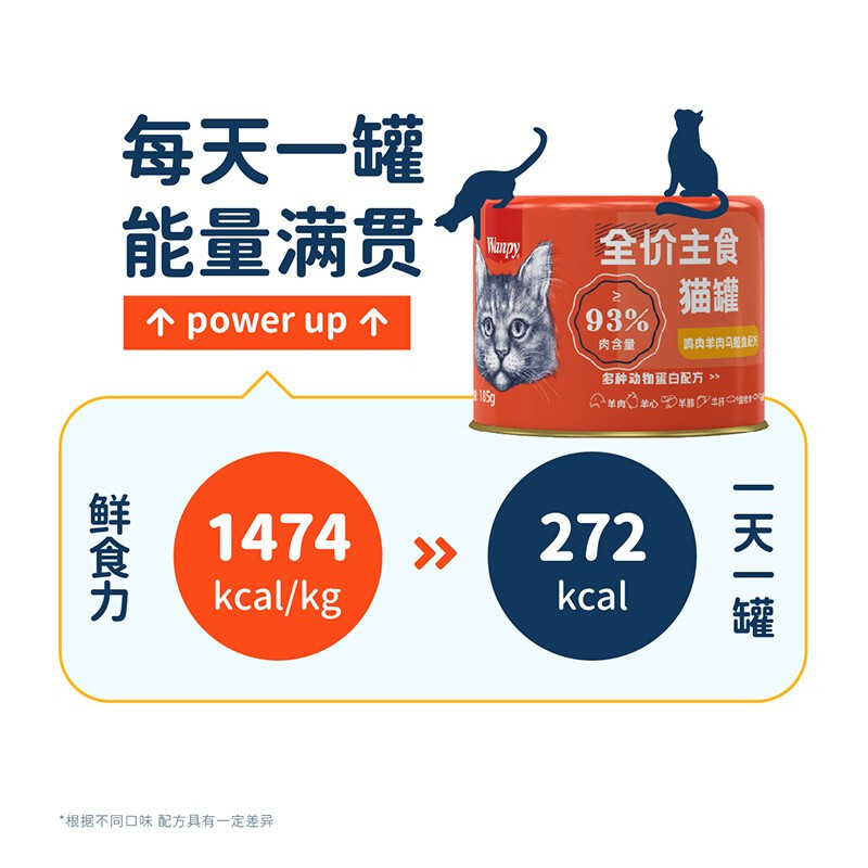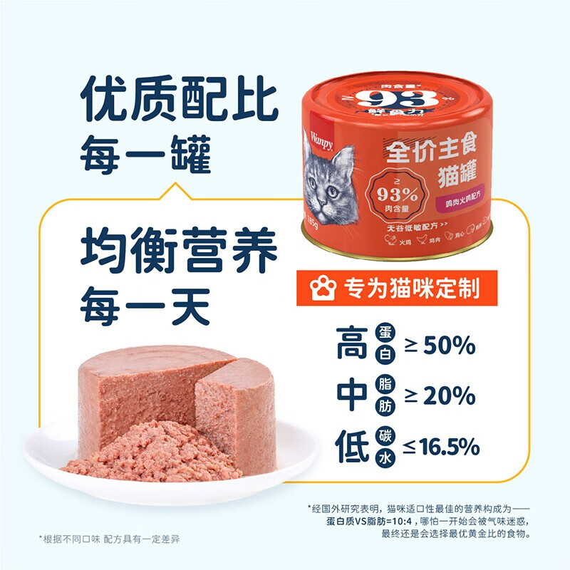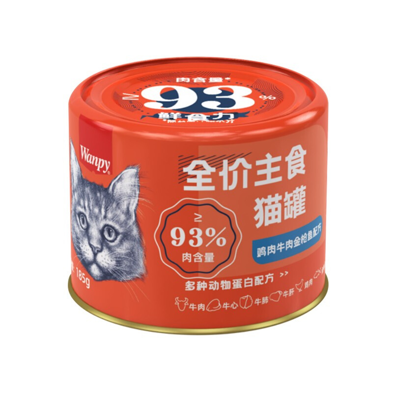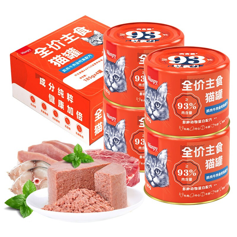 顽皮 wanpy鲜食力全价主食罐 湿粮成幼猫通用孕期营养罐头 宠物猫咪肉泥罐 鸡肉牛肉金枪鱼配方丨185g*4