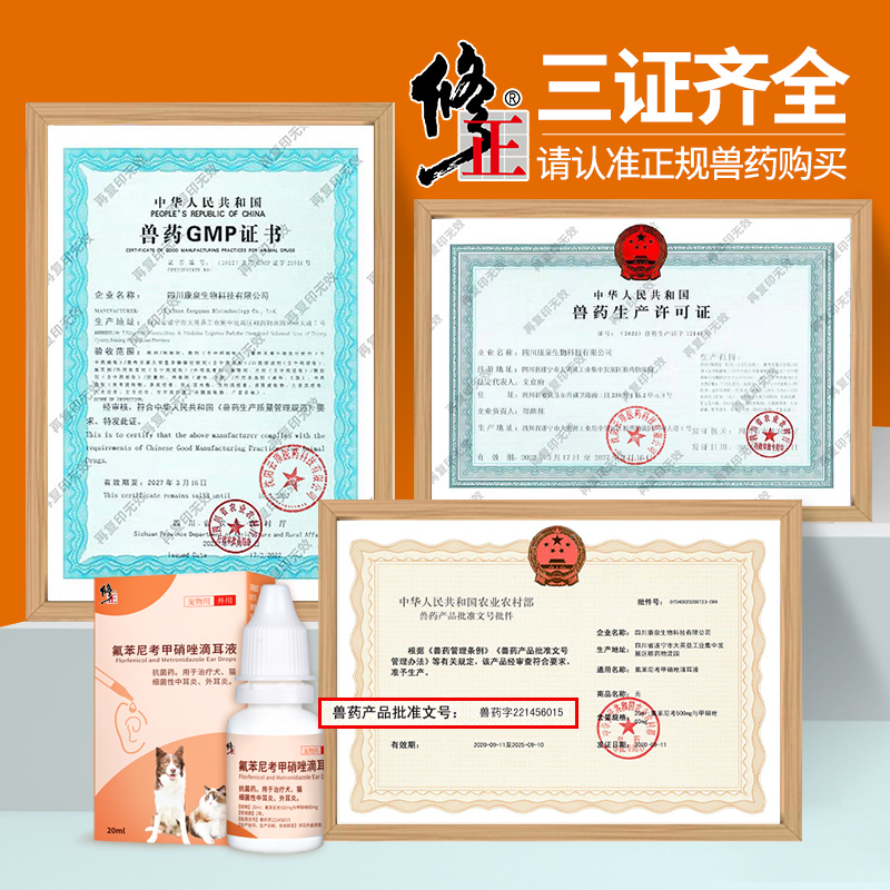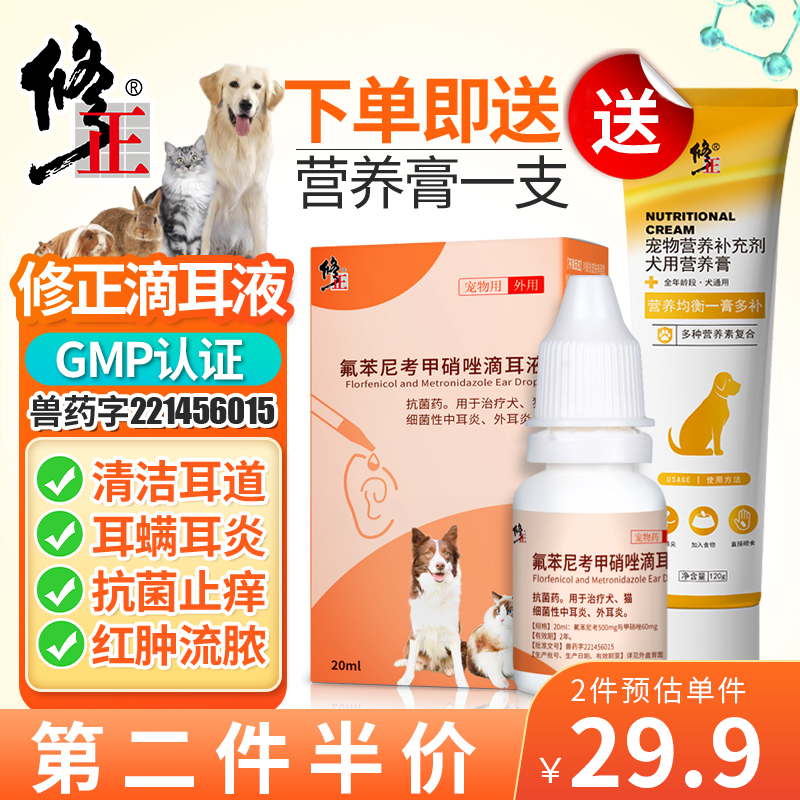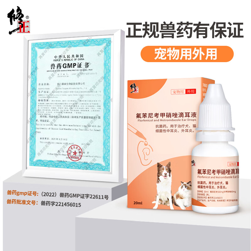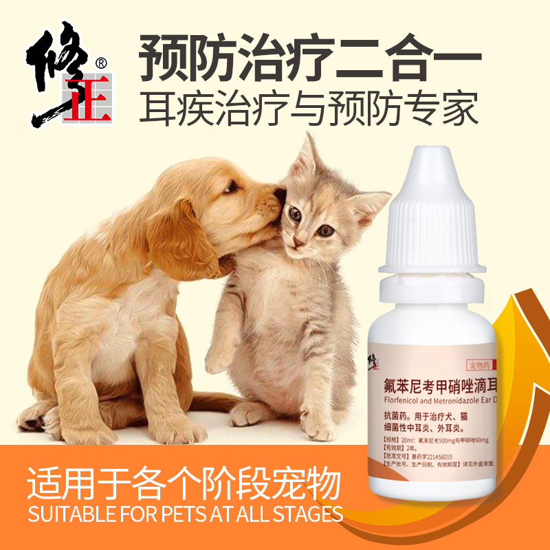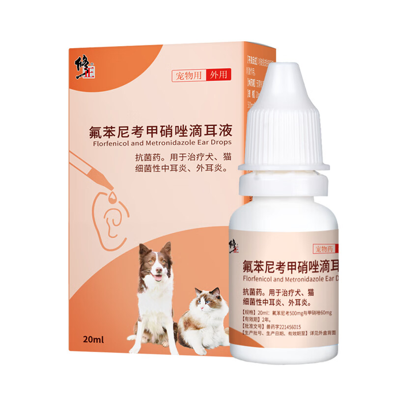 修正狗狗耳螨药猫咪洗耳液宠物耳油中耳炎耳朵清洁液氟苯尼考甲硝唑滴耳液20ml