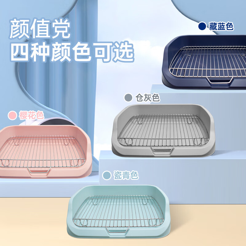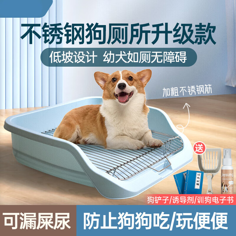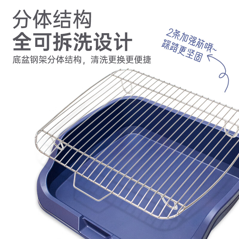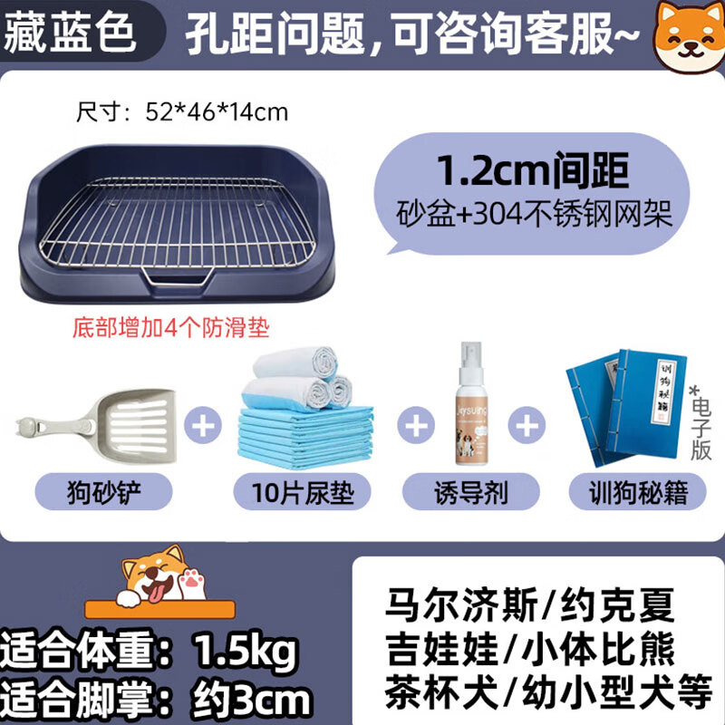 凡佰酷304不锈钢狗厕所中小型犬比熊泰迪防踩屎宠物厕所狗尿垫盆 藏蓝色52*46*14孔距1.2cm